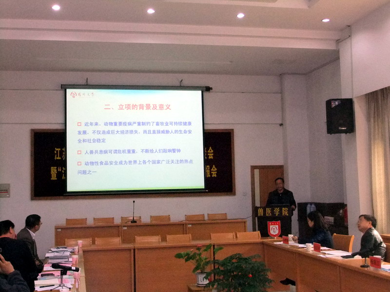 2013年11月15日下午,由江苏省教育厅学位办组织的“2013省研究生培养模式改革与建设情况调研座谈会”暨“省研究生教育工作会议”专题研究项目汇报会在我校召开。副校长胡效亚致欢迎辞。研究生院常务副院长俞洪亮主持。省教育厅研究生处处长、省学位办主任杨晓江、东南大学研究生院副院长熊宏齐、南京财经大学研究生处副处长殷华方、省学位办副调研员曹世敏、省学位办挂职干部李梦娥、兽医学院院长刘宗平、学科建设办公室主任刘拥军、研究生工作部部长凌云志、兽医学院书记宋亭华等院领导、项目组负责人和研究生院全体同志出席了本次会议。