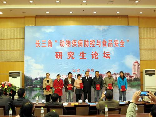 11月15日到17日,由长三角研究生教育创新计划协作委员会主办,江苏省学位办、扬州大学承办的长三角“动物疾病防控与食品安全”研究生论坛在我校成功举行。此次论坛由扬州大学兽医学院常务副院长刘宗平教授主持,江苏省教育厅研究生处处长、省学位办主任杨晓江教授及扬州大学副校长刘祖汉教授出席开幕式并致辞。