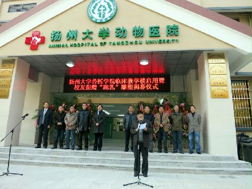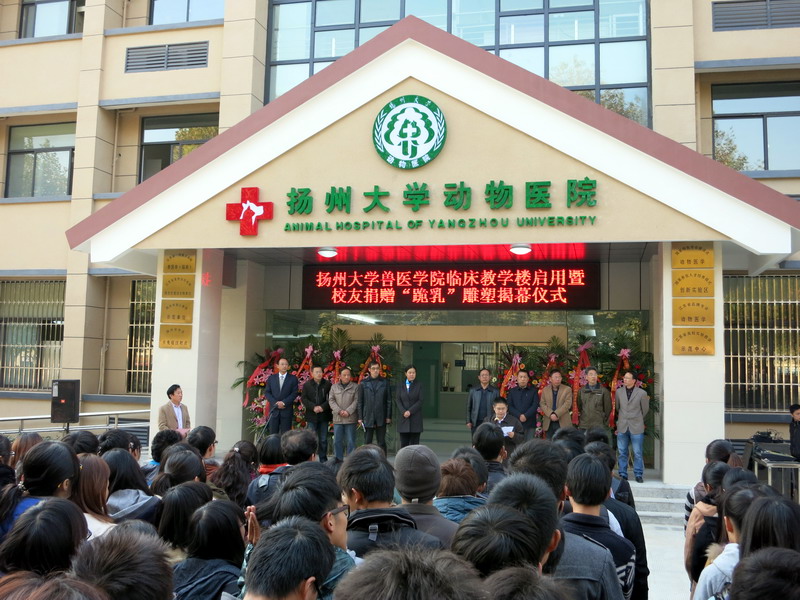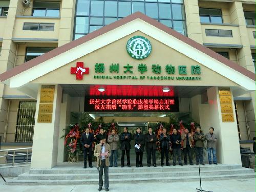 扬州大学兽医临床教学楼的原址是扬州大学动物医院,它的前身是苏北农学院附属兽医院,创建于1952年,成立60多年来,为动物医学专业的教学、科研及服务地方畜牧业生产做出了巨大贡献,培养了近万名服务在畜牧业生产一线的优秀兽医人才,在全省乃至全国兽医系统具有广泛影响。随着现代畜牧业及我校教学科研水平的快速发展,我校动物医院原有的建筑和设备已远远不能适应学科建设和社会发展的需要。因而学校投资1200多万元新建了兽医学院临床教学楼,投入了800多万元添置了一大批先进的仪器设备和设施,建成了集教学、科研、社会服务于一体的兽医临床教学实验大楼,这对全面提升人才培养质量、教学科研水平和社会服务能力将起到积极的推动作用。