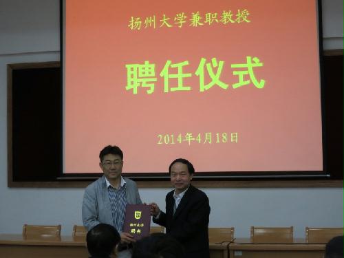 焦新安校长出席报告会并为高福院士颁发了扬州大学兼职教授聘书。