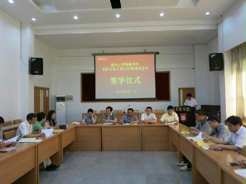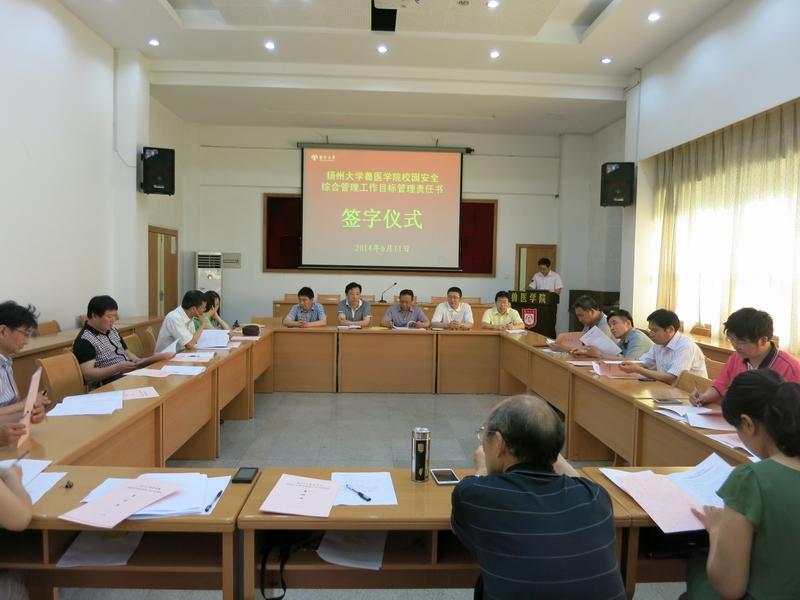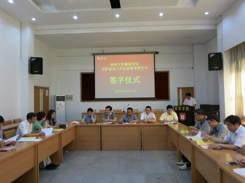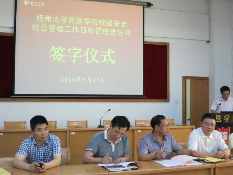 2014年6月11日,兽医学院在学术报告厅举行了党风廉政建设、消防安全工作目标管理及校园安全综合管理工作目标管理责任书签订仪式,仪式由常务副院长刘宗平主持。