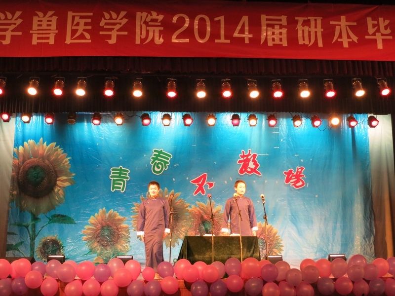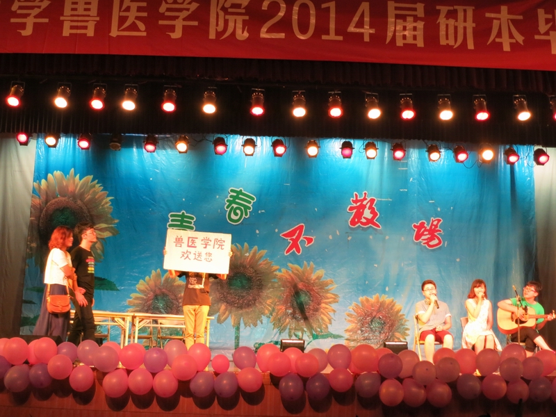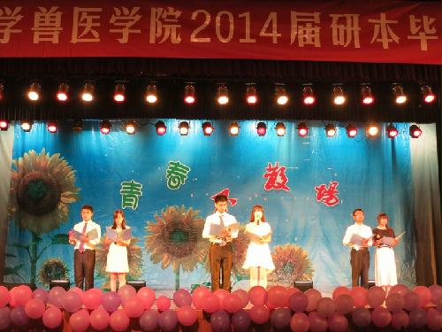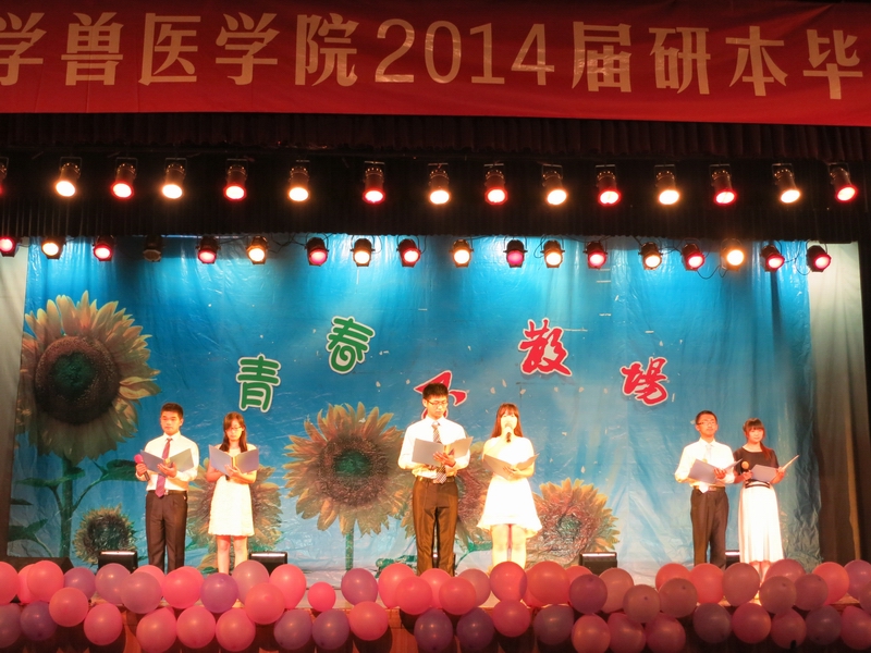 6月15日,兽医学院在大学生活动中心小剧场举办了2014届毕业生欢送晚会。全体院领导、毕业班班主任、院办及团委老师、全体毕业班同学、部分非毕业班同学出席晚会。