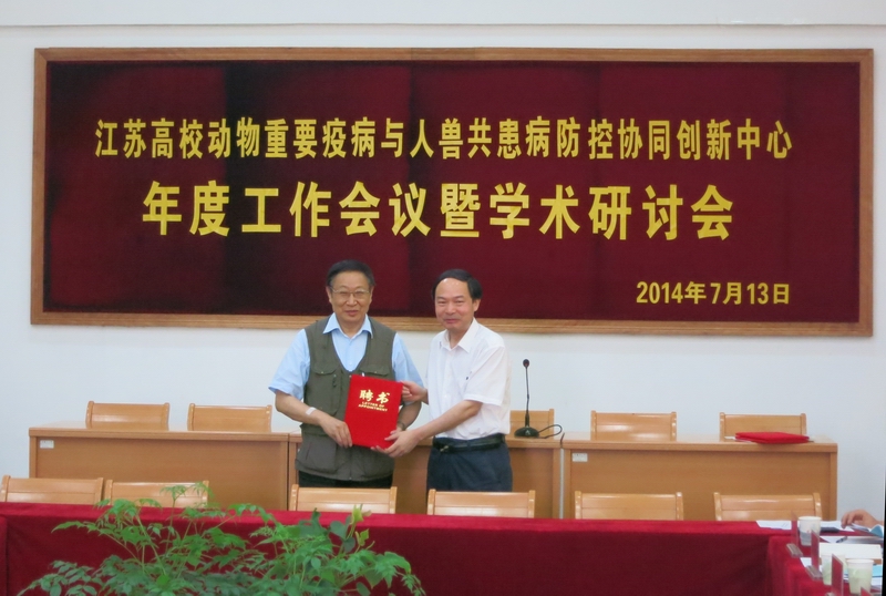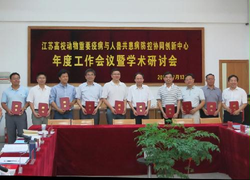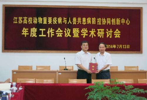 7月13日,由我校牵头组建的“江苏高校动物重要疫病与人兽共患病防控协同创新中心”年度工作会议暨学术研讨会在我校兽医学院学术报告厅召开。扬州大学科学技术处吴圣龙处长主持会议,来自于吉林大学、南京农业大学、华南农业大学、河南农业大学、中国人民解放军军事医学科学院军事兽医研究所、中国农业科学院哈尔滨兽医研究所、中国农业科学院兰州兽医研究所、中国农业科学院上海兽医研究所、中国农业科学院家禽研究所、江苏省农业科学院等协同单位及本校的专家代表出席会议。