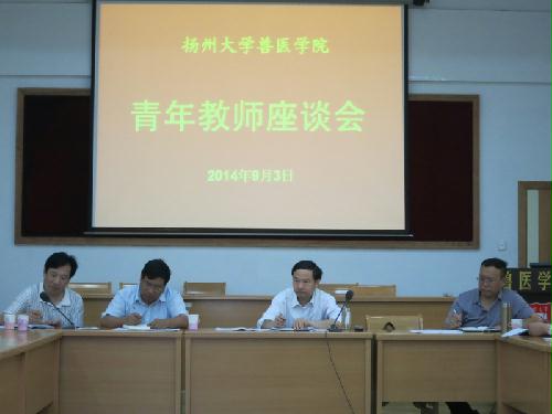 9月3日下午,兽医学院在二楼报告厅召开了青年教师座谈会,兽医学院24名40岁以下的青年教师参加了座谈,焦新安校长及人事处陆伟刚处长、兽医学院负责同志参加会议。座谈会由兽医学院党委书记宋亭华主持。