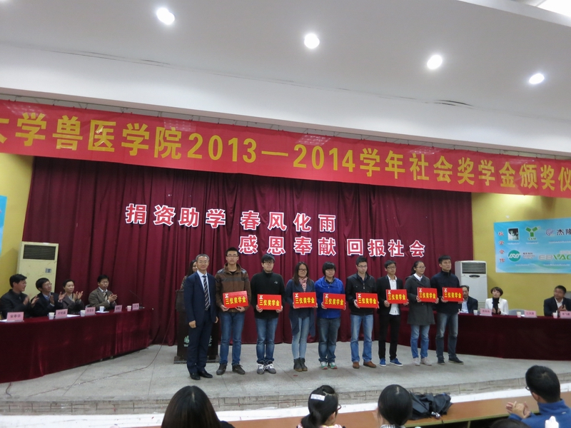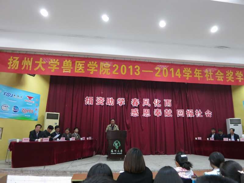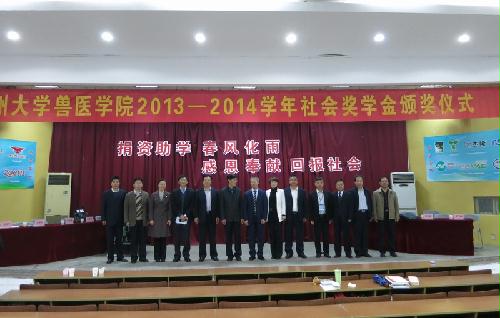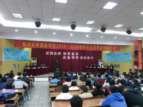 11月8日下午,扬州大学兽医学院2013-2014学年社会奖学金颁奖仪式在文汇路校区科技报告厅成功举行。