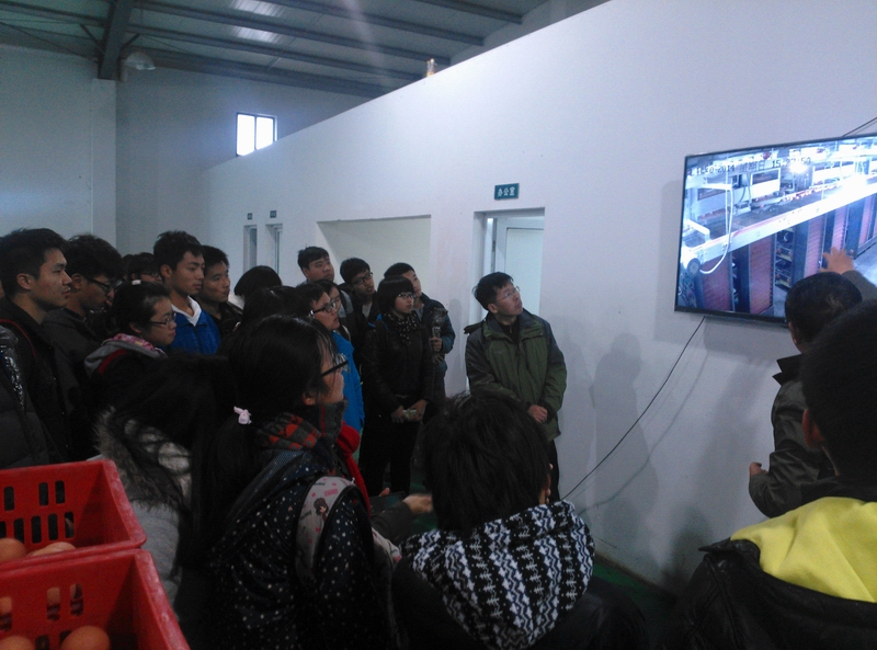 下午来到位于海安县的天成现代农业科技园,在海安县农委相关负责人的带领下参观了现代化的养鸡场,种鸡区、羽苗鸡孵化区、羽商品鸡区、有机肥加工中心、集蛋区,严格的分区、自动化的流水设备令学生们印象深刻。