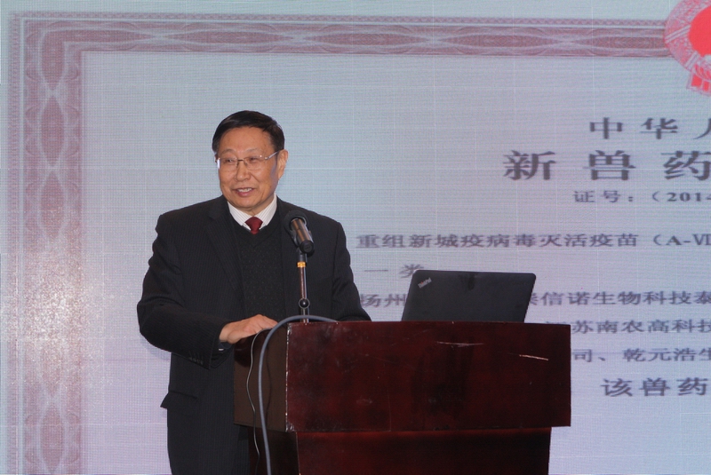 12月18日,由扬州大学主办的国家一类新兽药“重组新城疫病毒(A-VII株)灭活疫苗”成果发布会暨家禽重要疫病防控论坛在扬州京华维景大酒店召开。刘秀梵院士介绍了“重组新城疫病毒(A-VII株)灭活疫苗”研制及使用情况,校长焦新安出席会议并致辞,副校长刘祖汉主持发布会。农业部科教司、中国农科院上海兽医所领导、专家以及数十家企业负责人、代表出席本次活动。