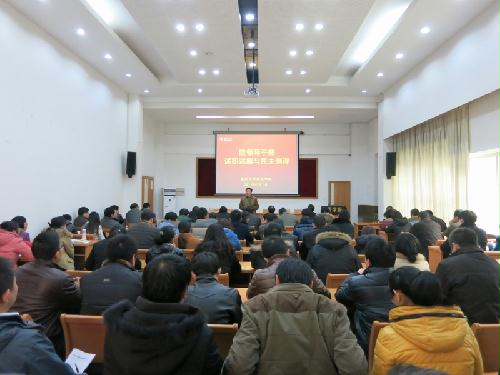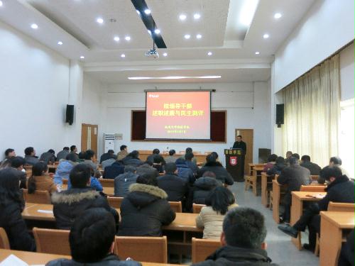 2015年1月7日下午,兽医学院在院学术报告厅举行2014年度院领导干部述职述廉与民主测评,大会由院党委宋亭华书记主持,焦新安校长及兽医学院全体教职员工和部分研究生、本科生代表出席大会。