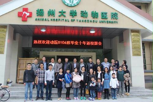 2015年4月18日,恰逢扬州“烟花三月”国际经贸旅游节开幕之际,扬州大学兽医学院动医0106班的同学们也来到了扬州,举行毕业十周年返校聚会活动。院党委副书记马雷老师、动医0106班班主任邢华老师及院团委书记姚丰华老师应邀出席活动。