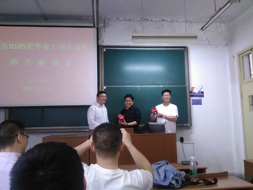 5月16日,在学校113周年校庆日前夕,我院动医0105班同学们返回母校,举行毕业十周年聚会活动。副院长彭大新、辅导员姚丰华老师应邀出席活动。