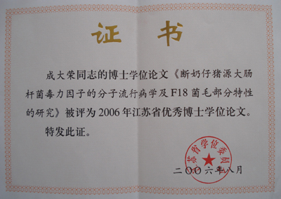 江苏省大学生“挑战杯”创业计划竞赛一等奖(2006)