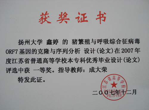 2007年度江苏省普通高等学校本科优秀毕业论文一等奖——鑫婷