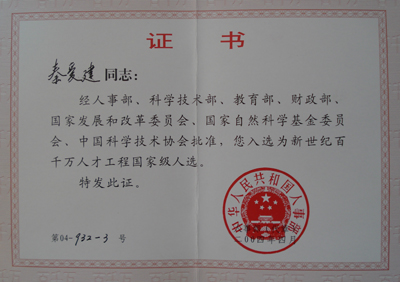 新世纪百千万人才工程国家级人选——秦爱建教授