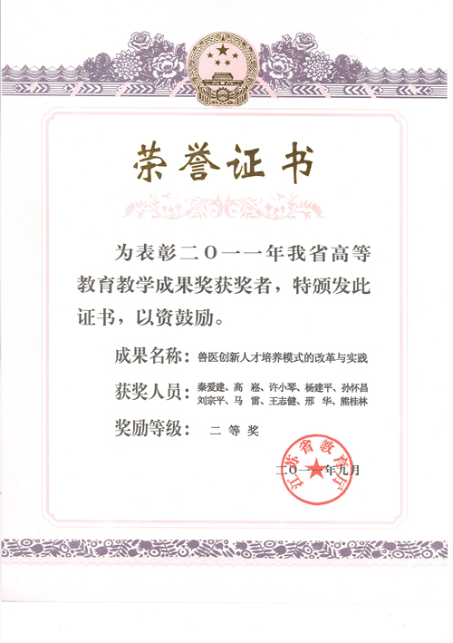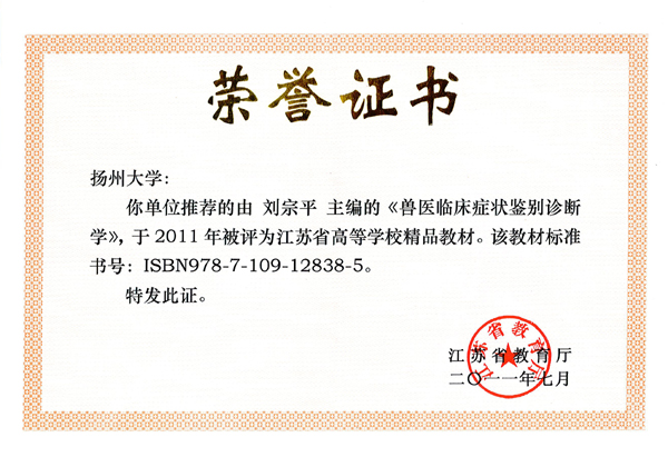 2011年江苏省高等教育教学成果二等奖——兽医创新人才培养模式的改革与实践