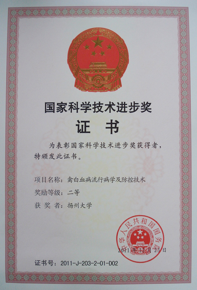 2011年国家科技进步二等奖——禽白血病流行病学及防控技术