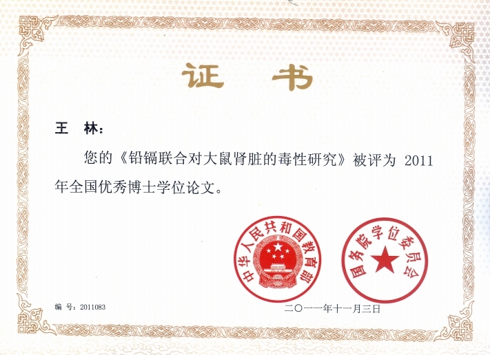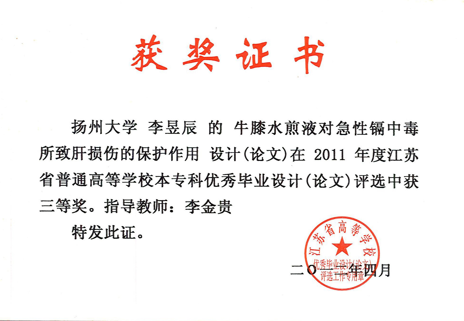 2011年度江苏省普通高等学校本科优秀毕业论文三等奖——李昱辰