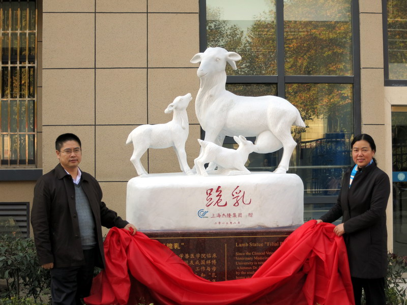 兽医学院举行临床教学楼启用暨校友捐赠“跪乳”雕塑揭幕仪式