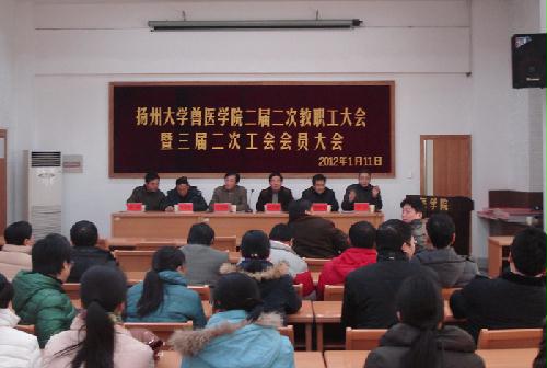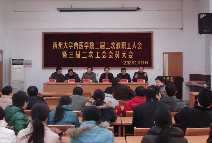 1月11日,兽医学院召开二届二次教职工大会暨三届二次工会会员大会,大会围绕“加强内涵建设,共谋发展大计,谱写学院‘十二五’事业发展新篇章”这一主题,听取了《院长工作报告》和《工会工作报告》。通过召开本次大会,全院教职工进一步统一了思想,明确了学院当前发展的主要任务和目标要求。会上还对2011年度在教学科研、学科建设和人才培养工作中取得突出业绩的有关人员进行了表彰和奖励。