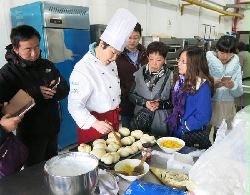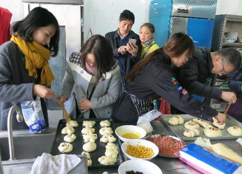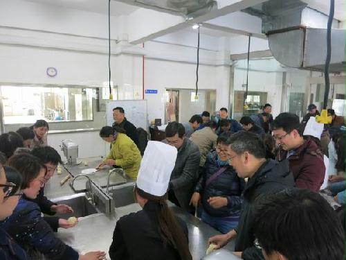 下午,学院教职工在院党委副书记张陟遥和院调研员宋亭华的带领下,乘车来到扬子津校区的旅游与烹饪学院。在旅游与烹饪学院的专业烘焙老师陈霞的讲解与示范下,大家重点学习了蛋糕和面包制作的关键配方和注意要点。之后,大家纷纷撸起袖子亲自制作,在陈老师和旅烹学院学生的指导和帮助下,现场体验了蛋糕和面包从和面、滚圆、整形、醒发、烤制的制作全过程,并分享糕点美食,体会劳动的乐趣,感受集体的温暖。