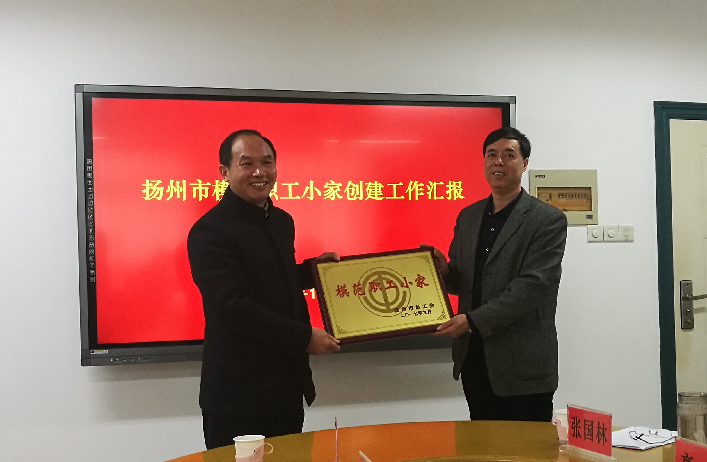 2017年11月28日,扬州大学兽医学院工会创建扬州市模范职工小家工作汇报及扬州市模范职工小家授牌仪式在扬州大学兽医学院五楼会议室举行。市模范职工小家评审专家由扬州市总工会组织部部长贺光明、扬州市教科文卫产业工会主任钱永羊、扬州大学工会主席高远、副主席李志玲、办公室副主任李年春、扬州大学化学化工学院原工会主席张国林组成,扬州大学兽医学院党委书记蔡丽娅及院工会委员出席会议,会议由扬州大学工会主席高远主持。