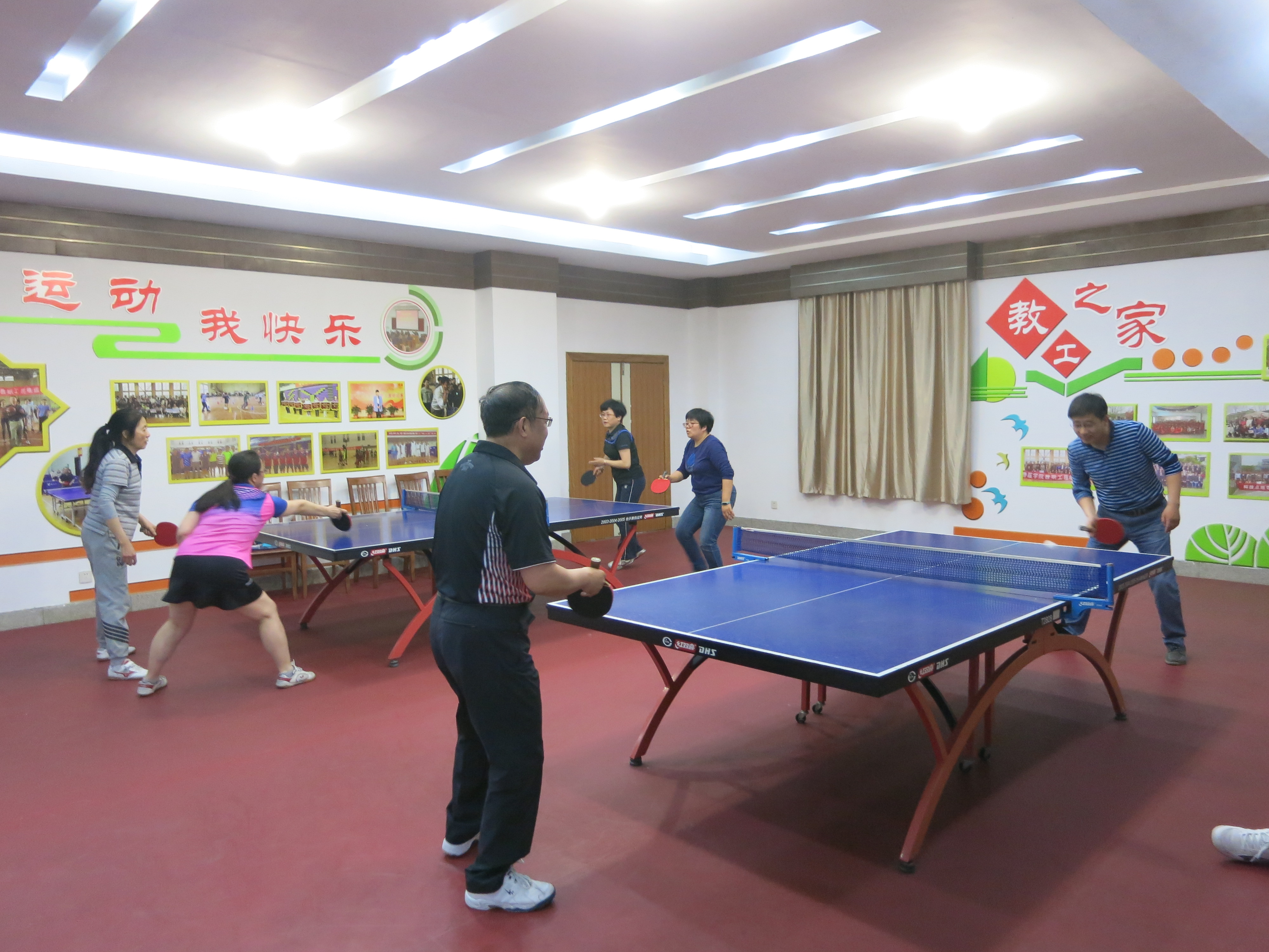 5月9日下午,兽医学院工会与校行政工会在文汇路校区兽医学院教工之家举办了教职工乒乓球友谊赛。