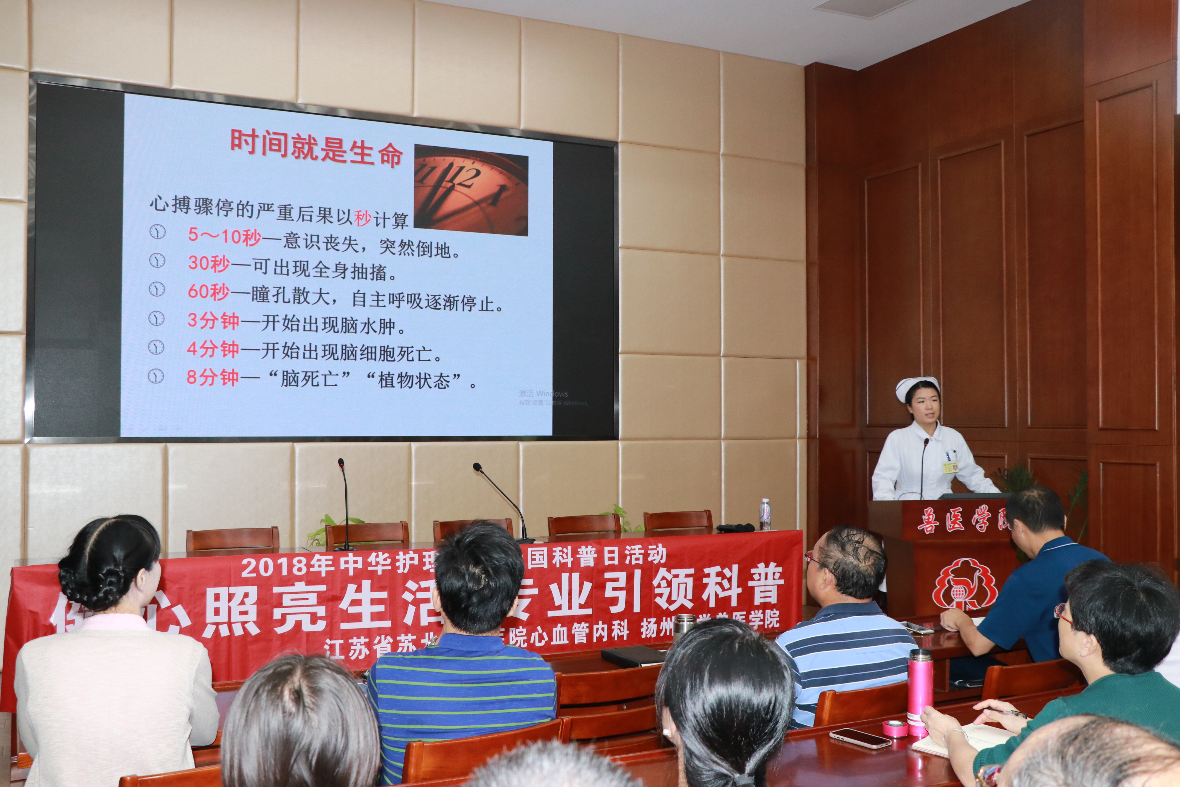 此次活动主要围绕心血管疾病的急救、预防和康复,以健康科普知识讲座、健康咨询等形式,开展心血管疾病科普宣传活动,以改变广大师生,特别是年轻人不良的生活方式,早期干预危害健康因素,提高自我保健意识,预防心血管疾病的发生。来自扬州大学兽医学院、生物技术与科技学院、农学院、数学科学院、后勤集团等学院和部门的80余名师生参加了此次活动。