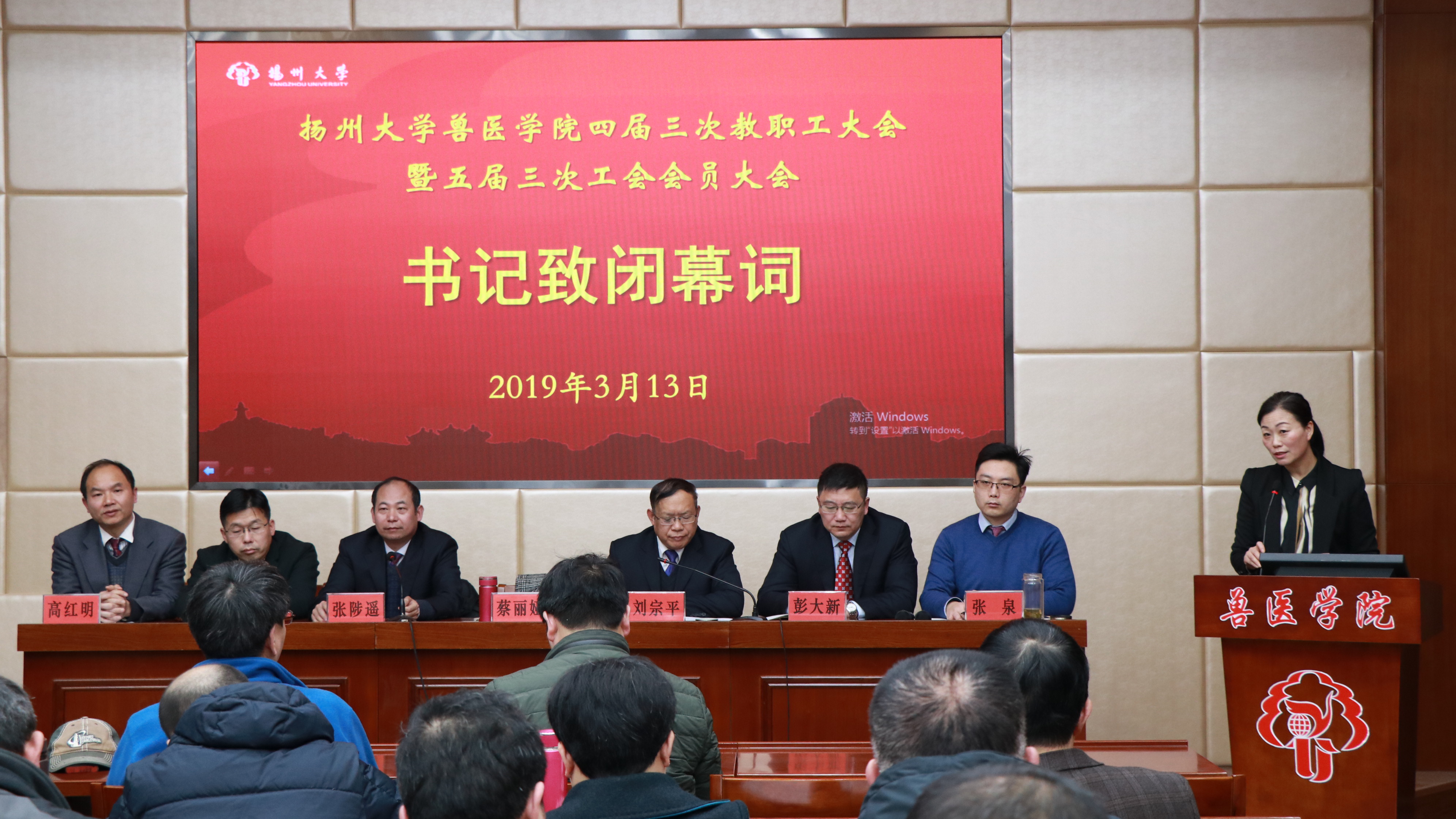 在《团结就是力量》的歌曲中,兽医学院四届三次教职工大会暨五届三次工会会员大会圆满完成各项议程,顺利闭幕。
