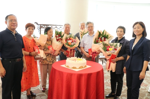 最后,学院为八位老同志集体欢度整十岁生日,其中两位90岁,四位80岁。学院领导为到场的寿星们献上鲜花,呈上生日蛋糕,大家同唱生日歌,离退休老同志们深深沉浸在学院大家庭的温暖中,欢度难忘而有意义的国庆和重阳佳节。