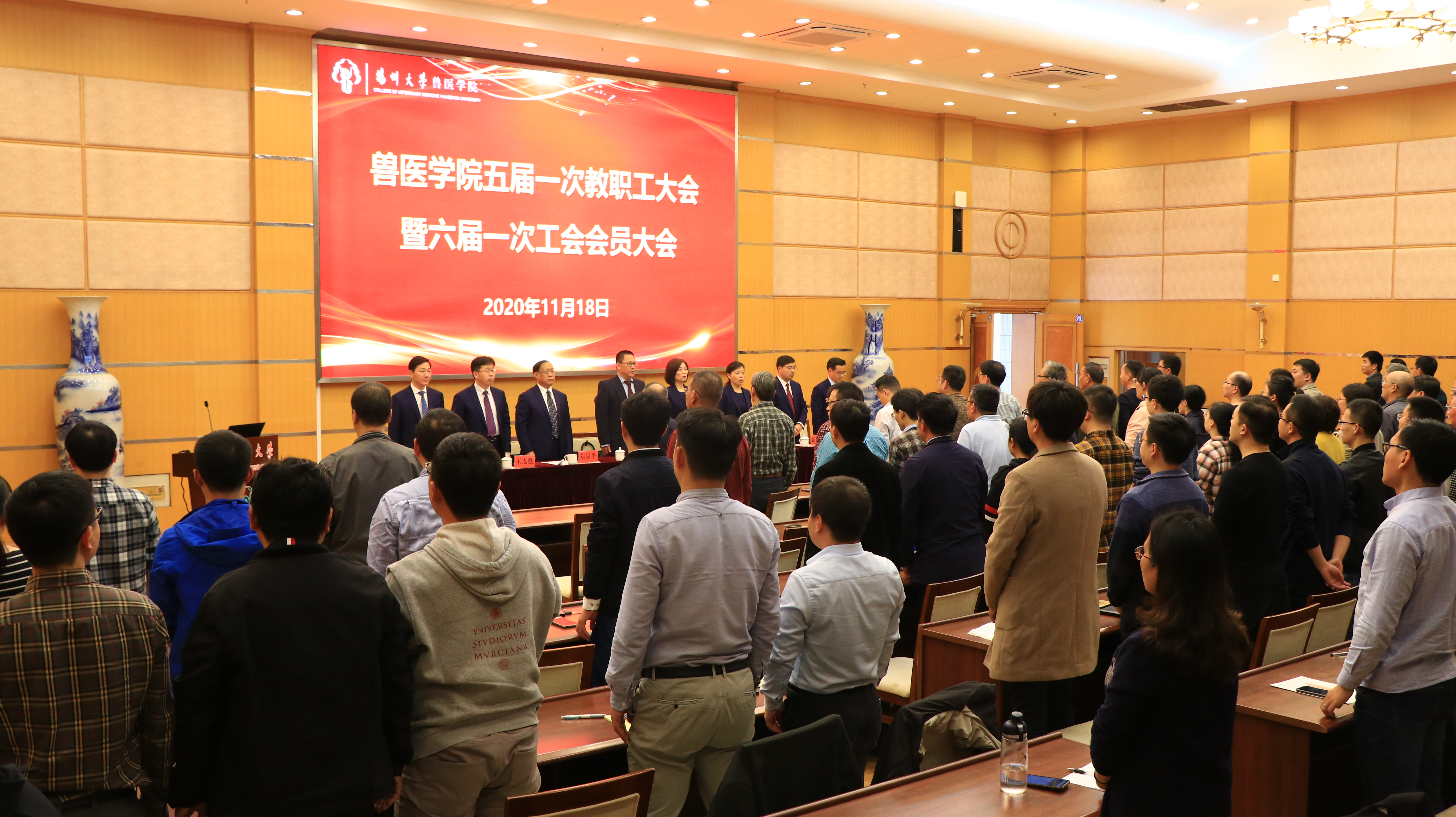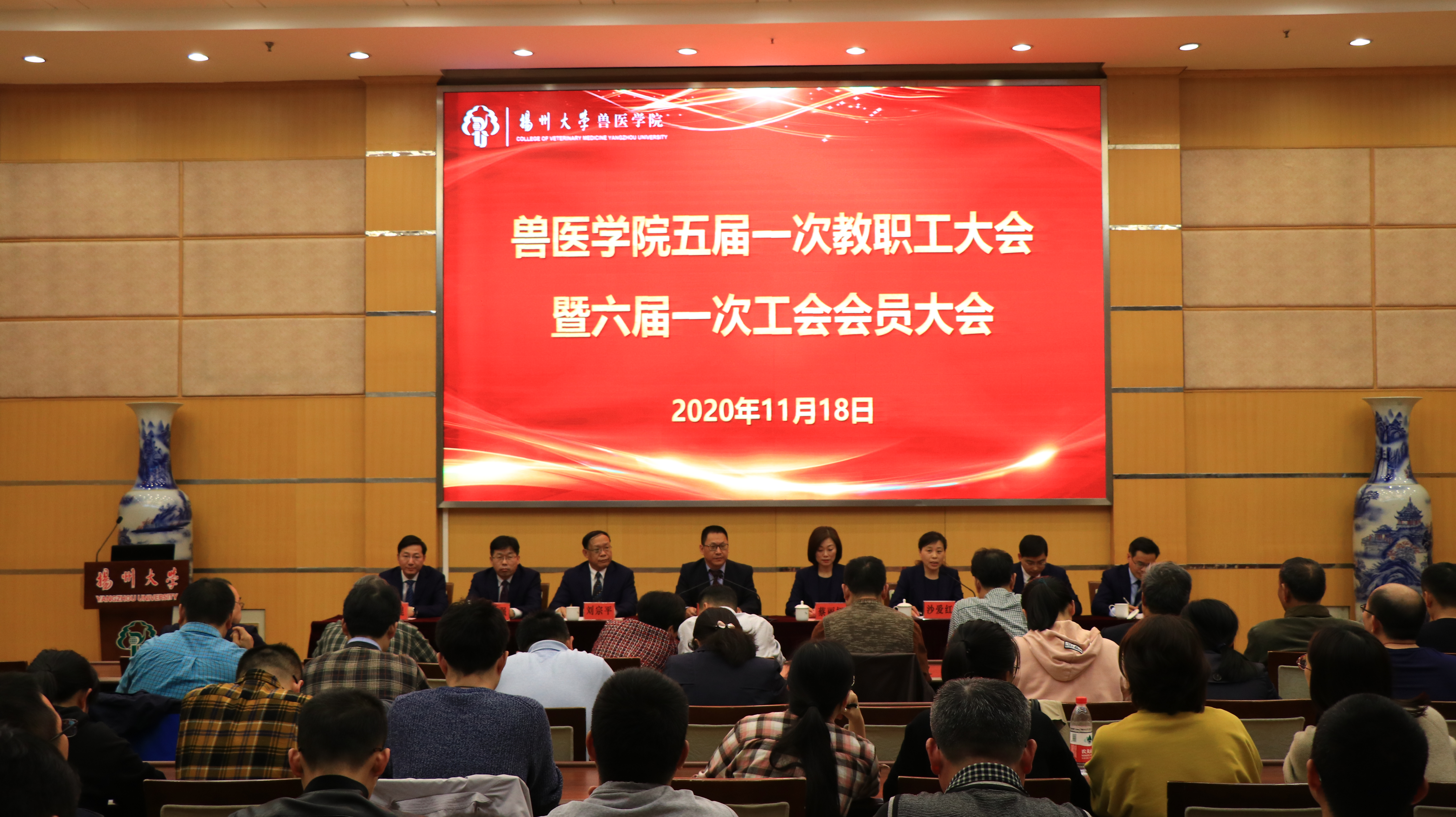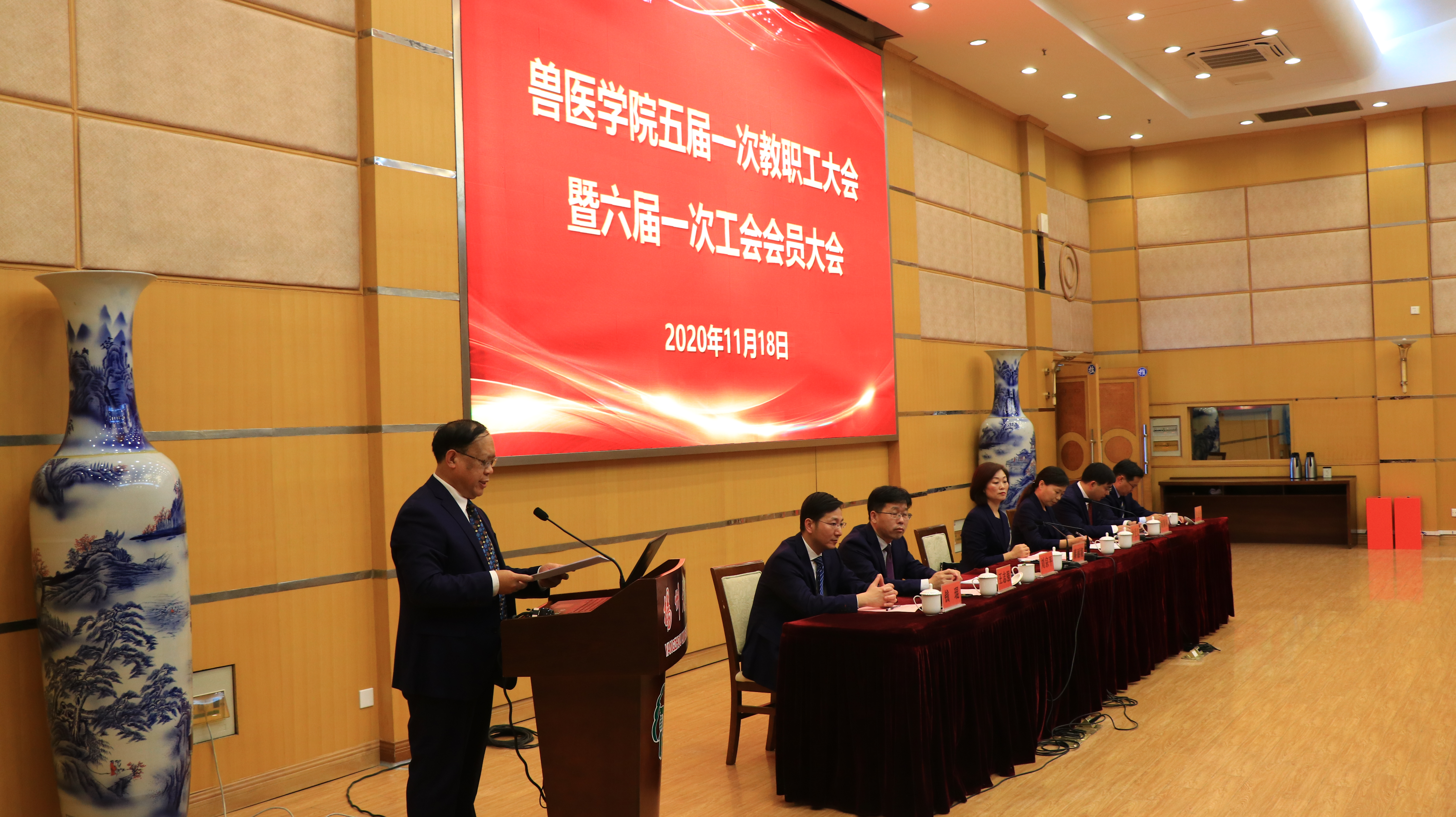 2020年11月18日,兽医学院在荷花池校区教学主楼多功能报告厅隆重召开了五届一次教职工大会暨六届一次工会会员大会。校工会副主席朱华光出席开幕式并致辞,全体院领导参加会议,会议由院党委副书记沙爱红主持。