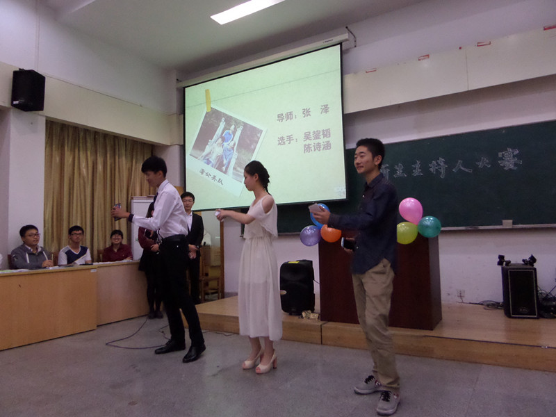 本次比赛有“小组展示”、“模拟主持”、“即兴评述”三个环节,环环相扣,全方面地考核了要成为一个主持人所需要的素质与能力,要求参赛选手不仅要形象端庄,谈吐自如,还要多才多艺,懂得随机应变,其中由导师刘仕琦率领的银河护卫队如一颗闪亮之星,在整场比赛中大放光彩,首轮的小组展示,队员张旭朝、戴迪出乎意料地扮演了在大陆红遍半边天的都敏俊与千颂伊,其“大尺度”的表演,毫不拘束的对话,频频获得观众的尖叫与掌声,与此同时,二人帅气美丽的形象以及Hold住全场的气势也赢得了嘉宾评委的赞赏,在之后的“模拟主持”环节中,张旭朝扮演的“黄渤”一角,完美地表现出了影帝黄渤幽默风趣的性格和内敛深沉的君子之风,最终,这支队伍毫无悬念地以极高分夺得本次比赛的一等奖,可谓实至名归。