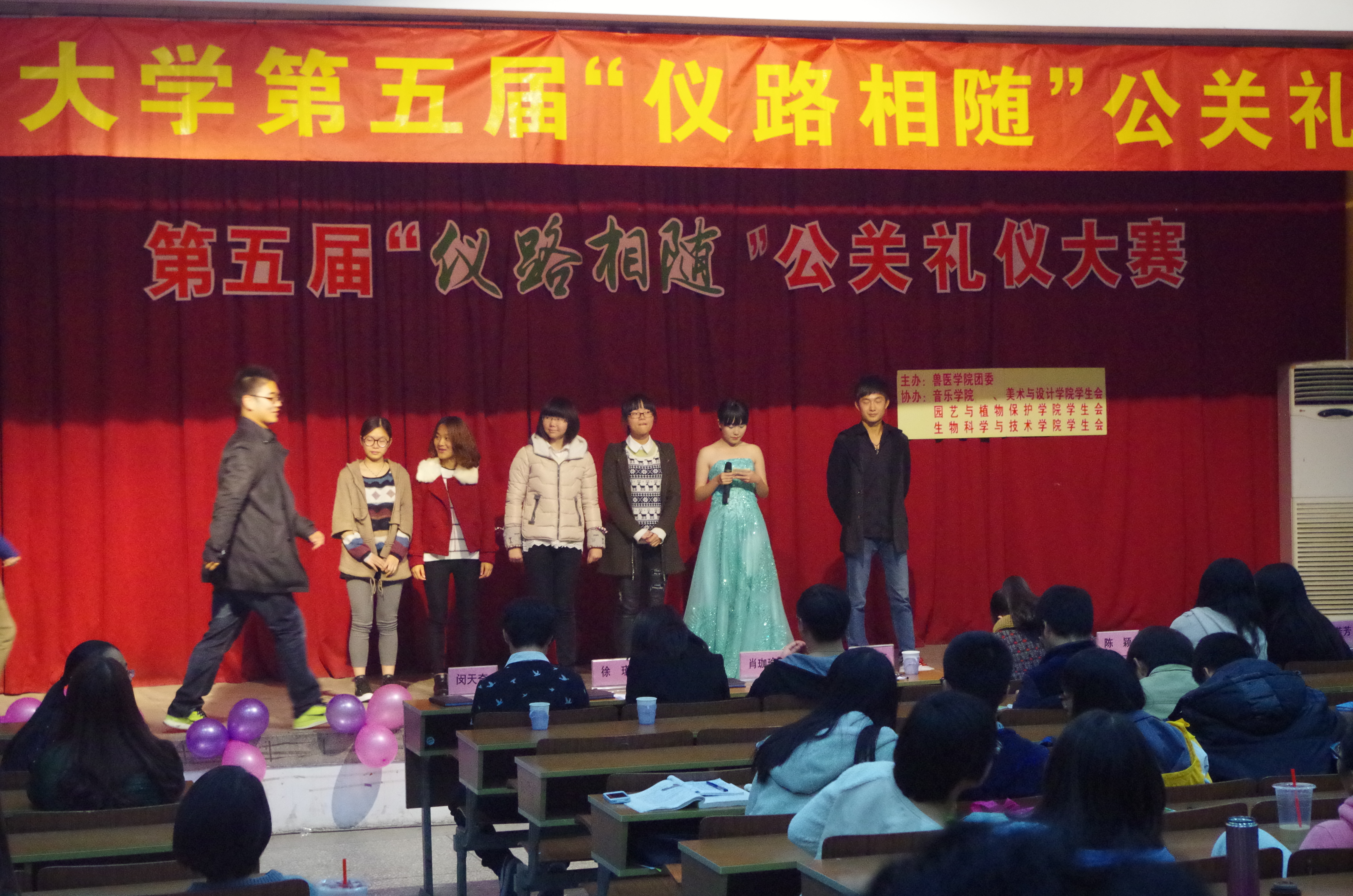 为提高在校大学生公关礼仪的意识,掌握面试时个人形象方面的礼仪规范,树立形象意识,为成功求职做好准备,兽医学院治保礼仪部联合文汇路校区包括美术与设计学院在内的四个学院于11月23日晚,在科技报告厅成功举办第五届大学生公关礼仪大赛决赛。