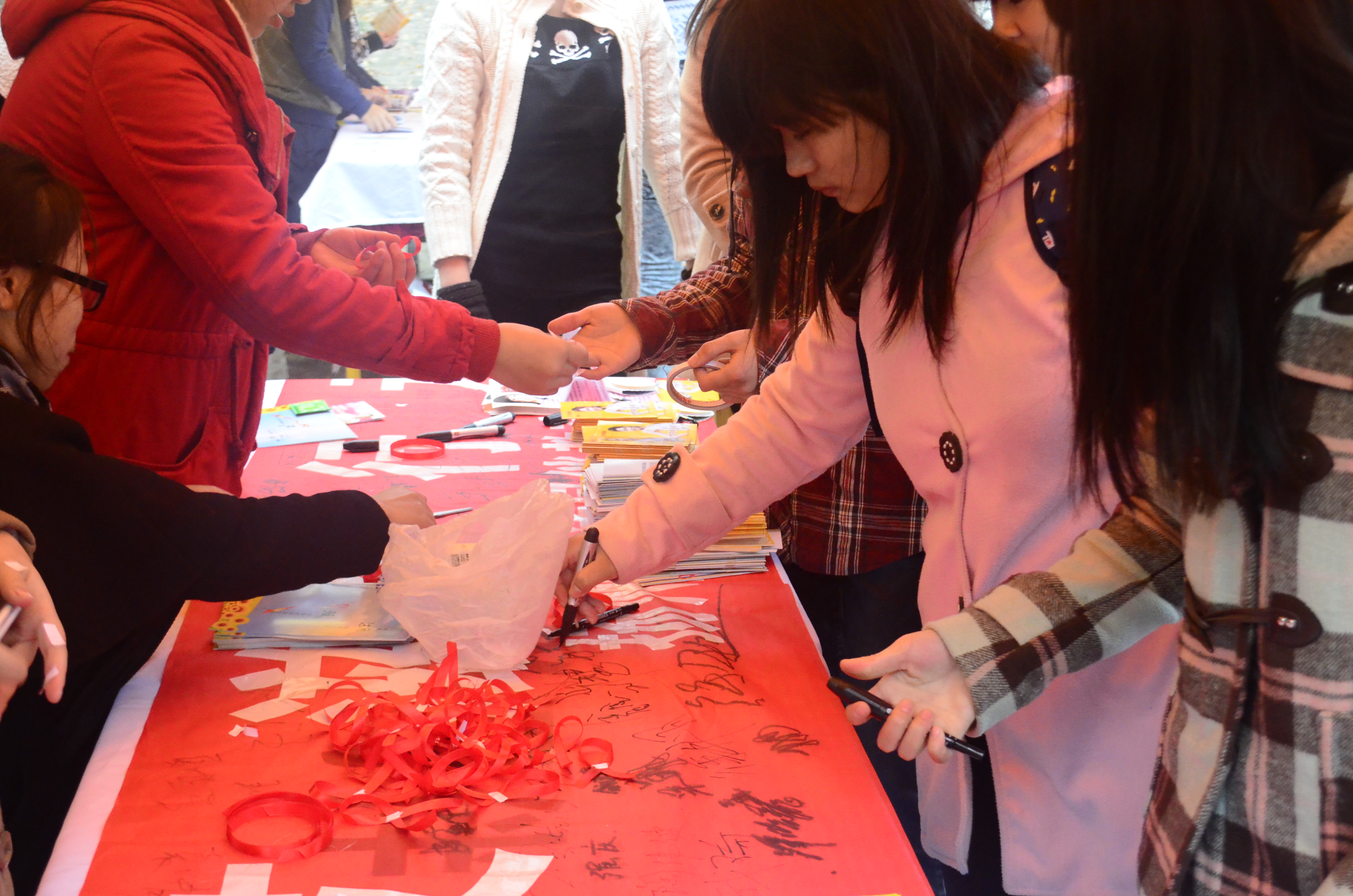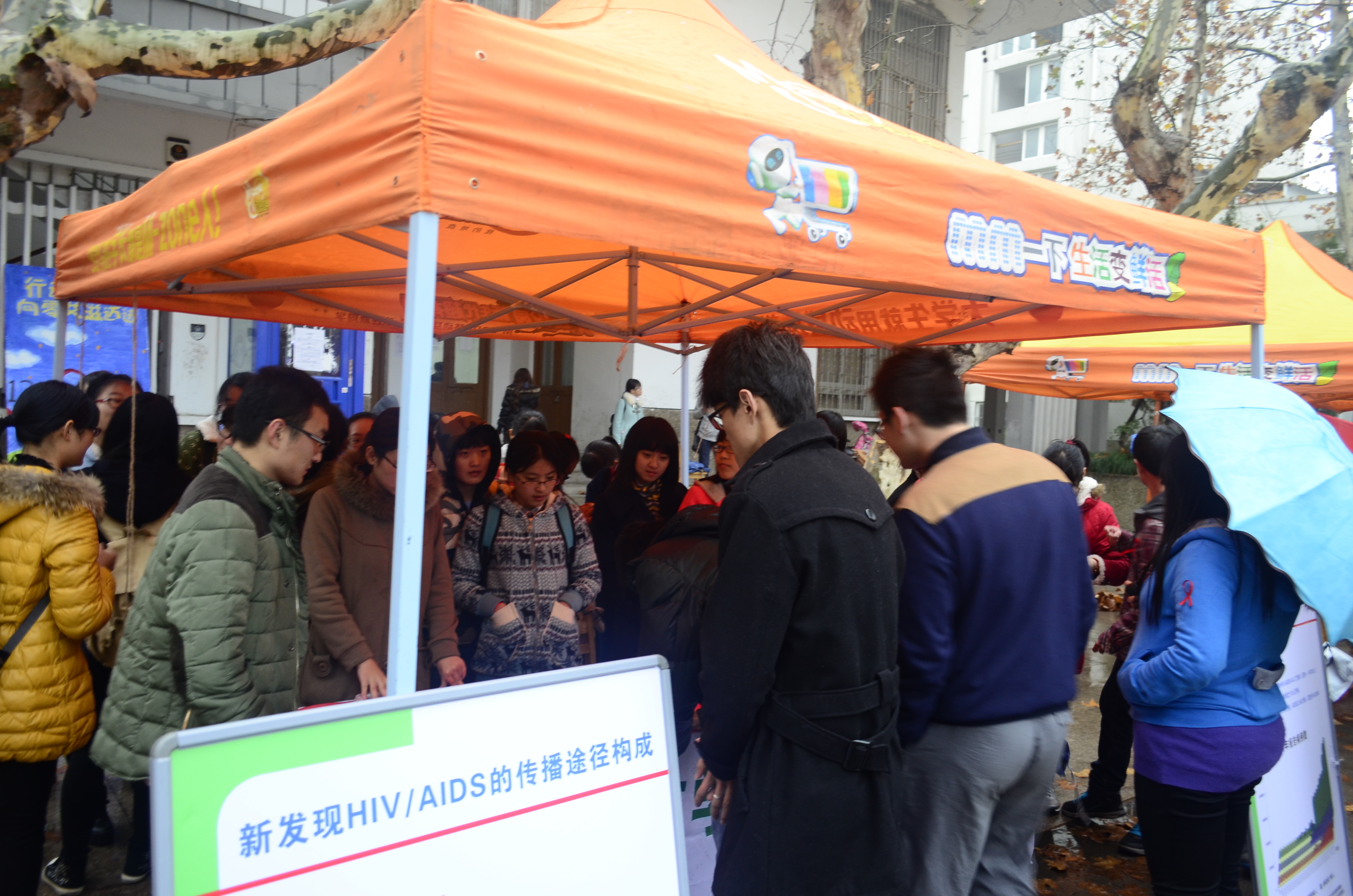 本次活动分为两个部分。上午,分会成员在文汇路校区食堂门口随机抽取路人填写问卷,并邀请路人在防艾横幅上签名留念。下午,主办方在科技报告厅前铺设工作台,并邀请专业医生配合宣传册子对路人进行与防艾知识有关的教育,接受教育的路人纷纷点头,若有所悟。最后,路人在红丝带上写下对艾滋病患者的祝福,并于工作台处领取避孕套。