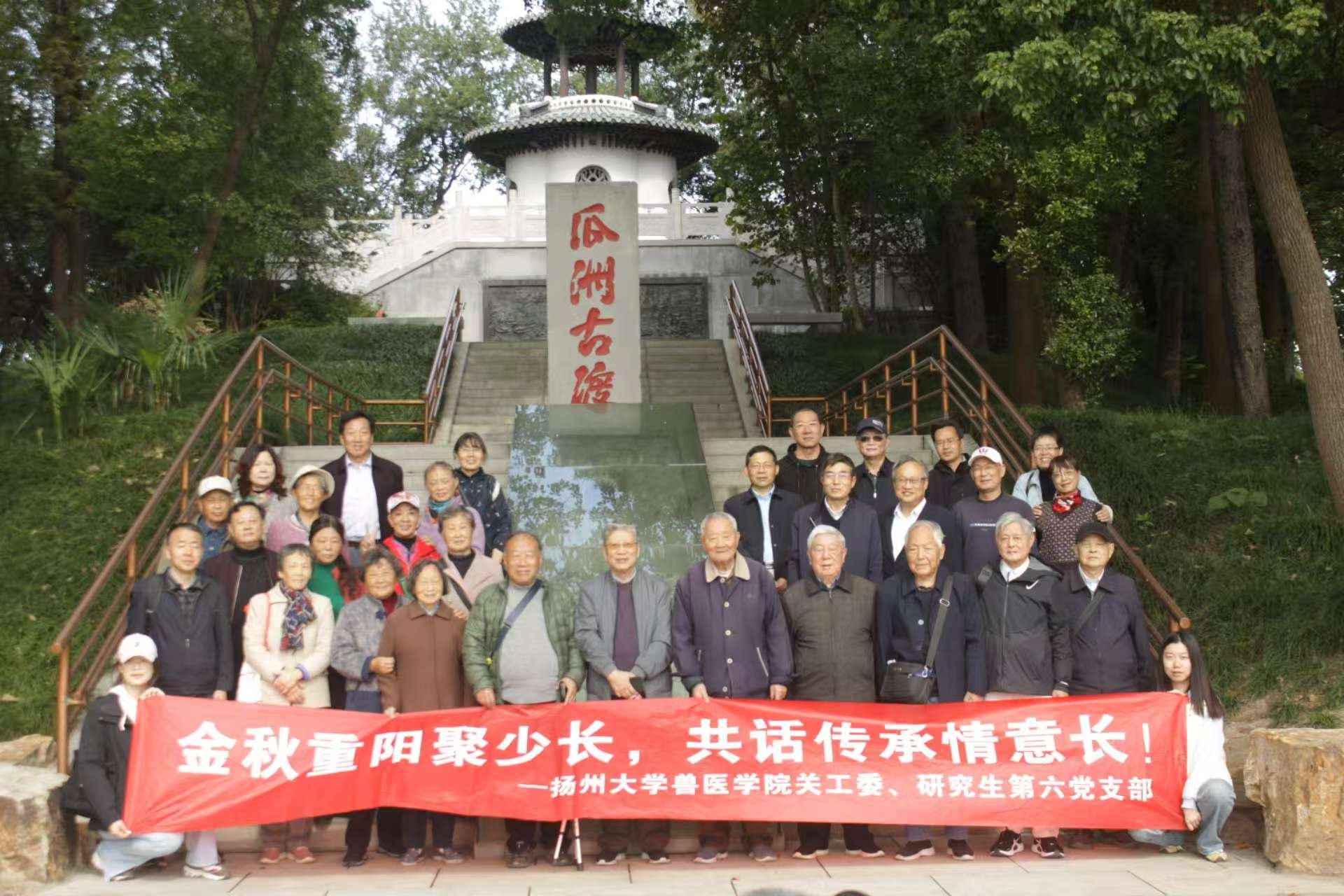 10月23日,兽医学院工会、关工委与研究生第六党支部联合组织退休教师前往瓜洲古渡公园开展重阳节登高秋游活动。研究生党员全程陪同,以“敬老传承”为主题,共度温情节日。