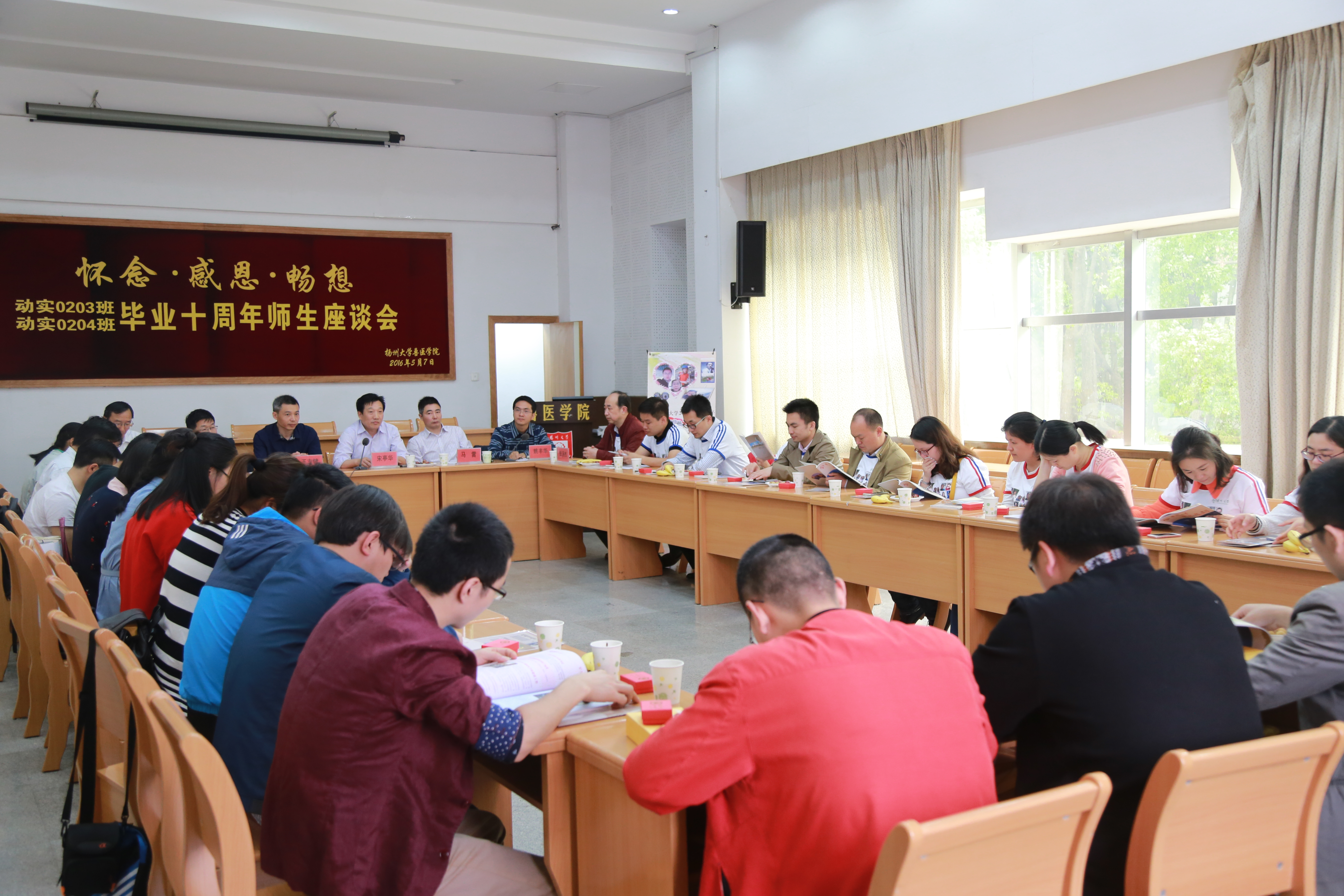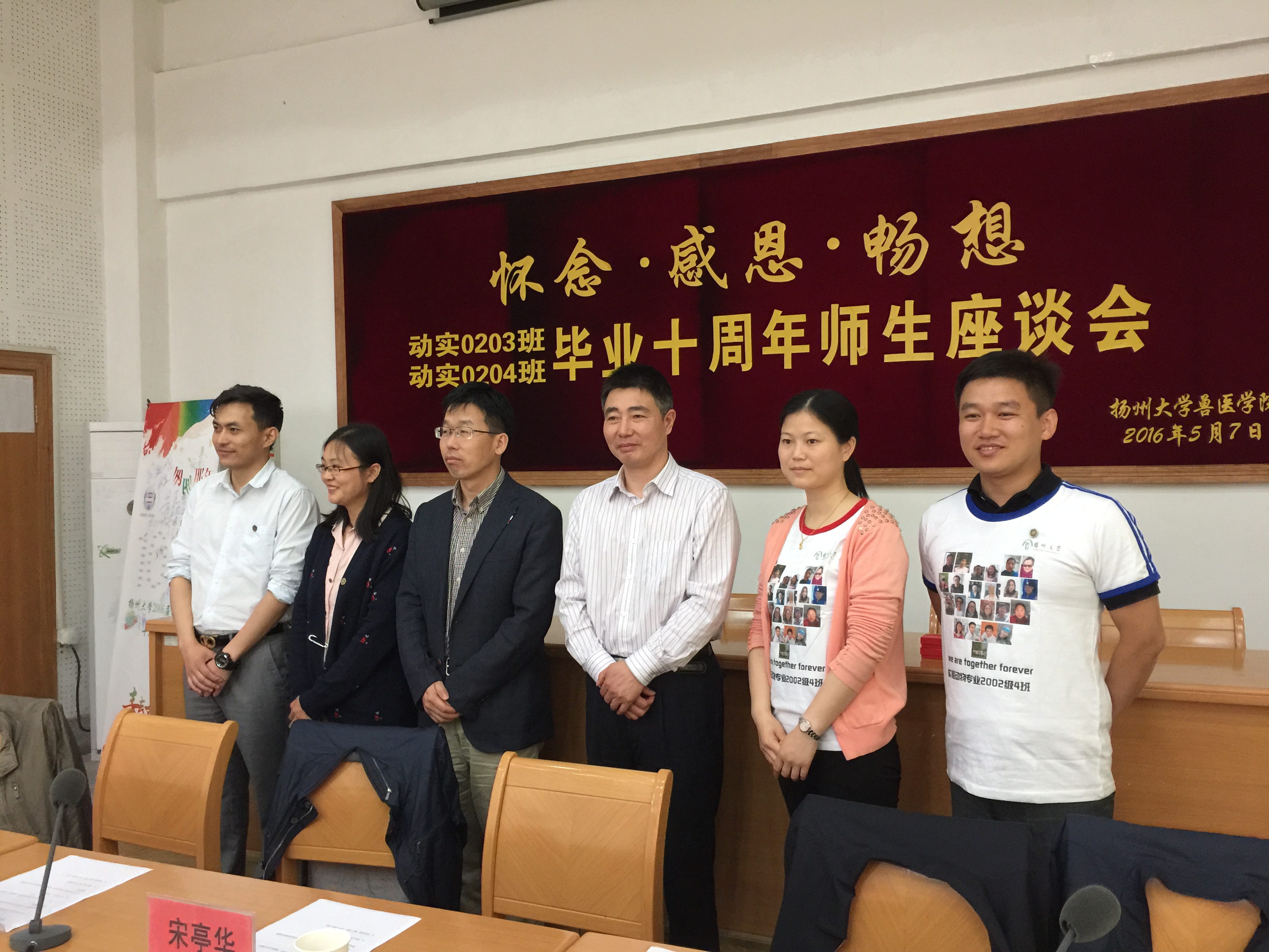 5月7日—8日,我院动实0203班、动实0204班校友在毕业十年后相约返回母校,举行毕业十周年聚会活动。院党委书记宋亭华老师、校对外联络办副主任王志健老师、院党委副书记马雷老师、副院长王志强老师、实验动物学教研室薛整风老师、两个班班主任杨玲老师、张汤杰老师和时任辅导员、院团委书记姚丰华老师应邀出席活动。