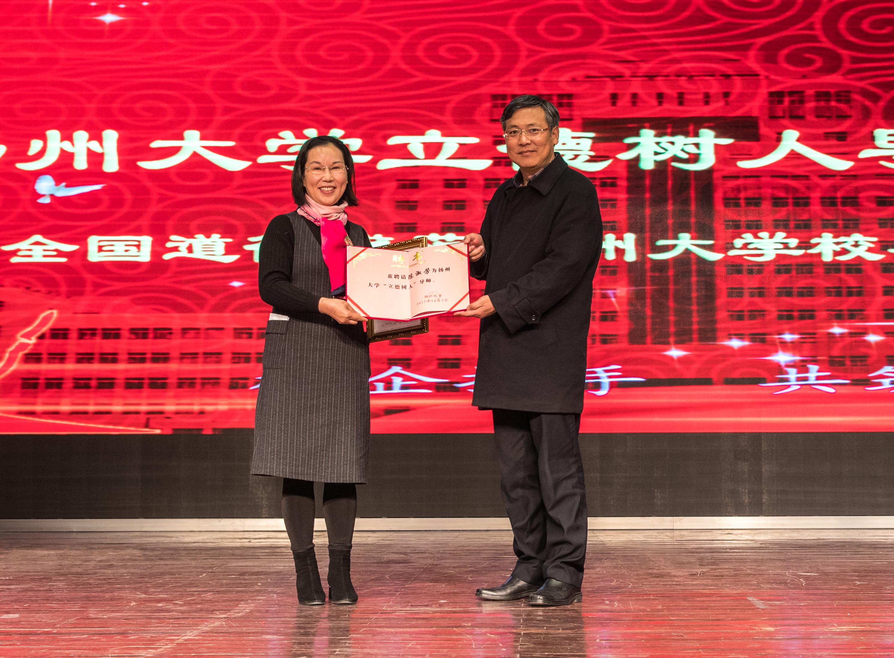 12月3日下午,刚刚获评全国道德模范的浙江象山县畜牧兽医总站站长、扬州大学校友陈淑芳回到母校,为扬州大学兽医学院首届“陈淑芳”班带来了三万元的立德基金,并被聘任为扬州大学立德树人导师。校党委副书记、副校长刘祖汉为陈淑芳颁发“扬州大学立德树人导师”聘书。
