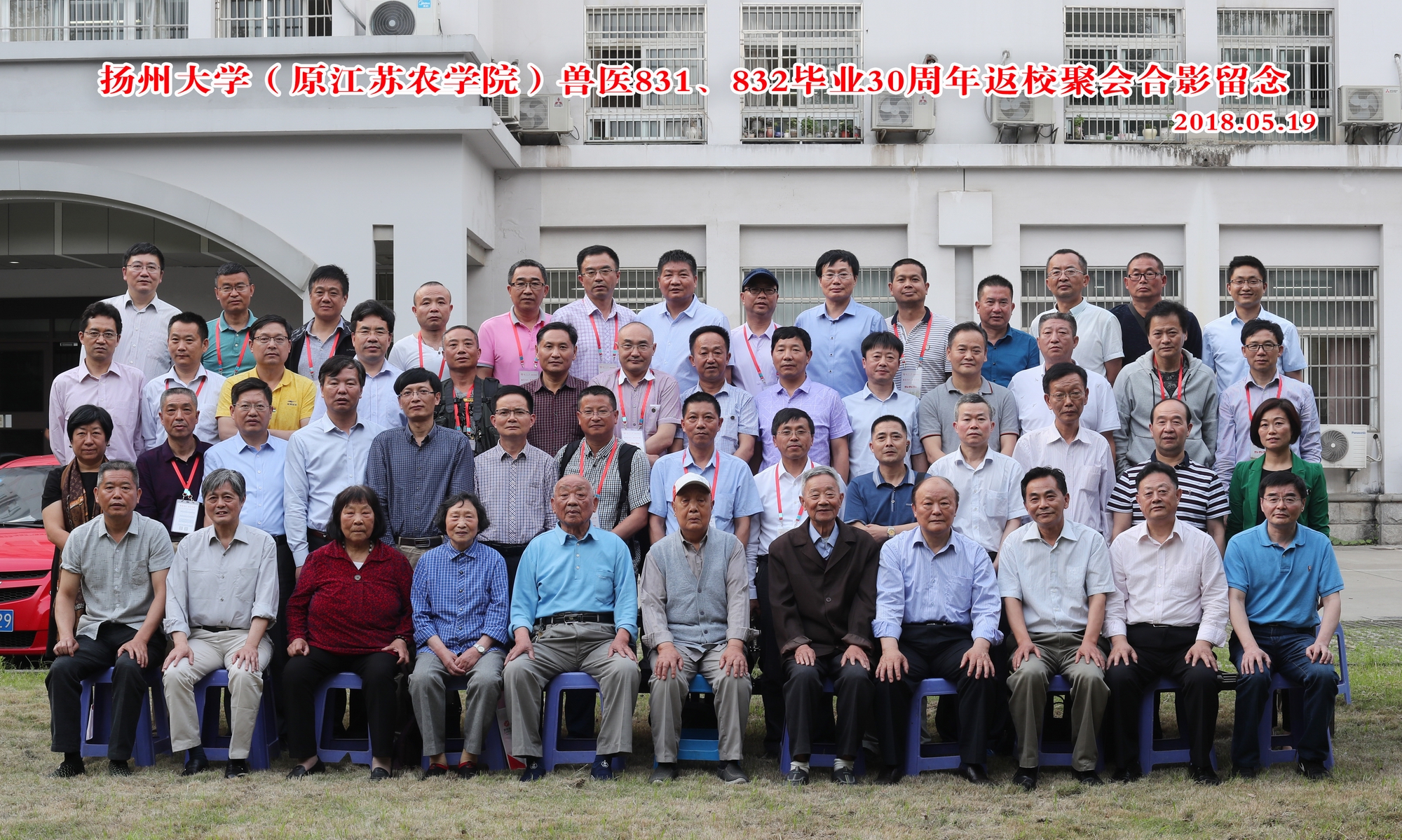 2018年5月19日,时值扬州大学建校116周年,近千名校友“回家”给母校庆生,扬州大学(原江苏农学院)兽医831班、兽医832班和卫检841班等88届校友毕业30周年后也纷纷从各地返校来到庆典现场,缘聚扬大,共享梦想。