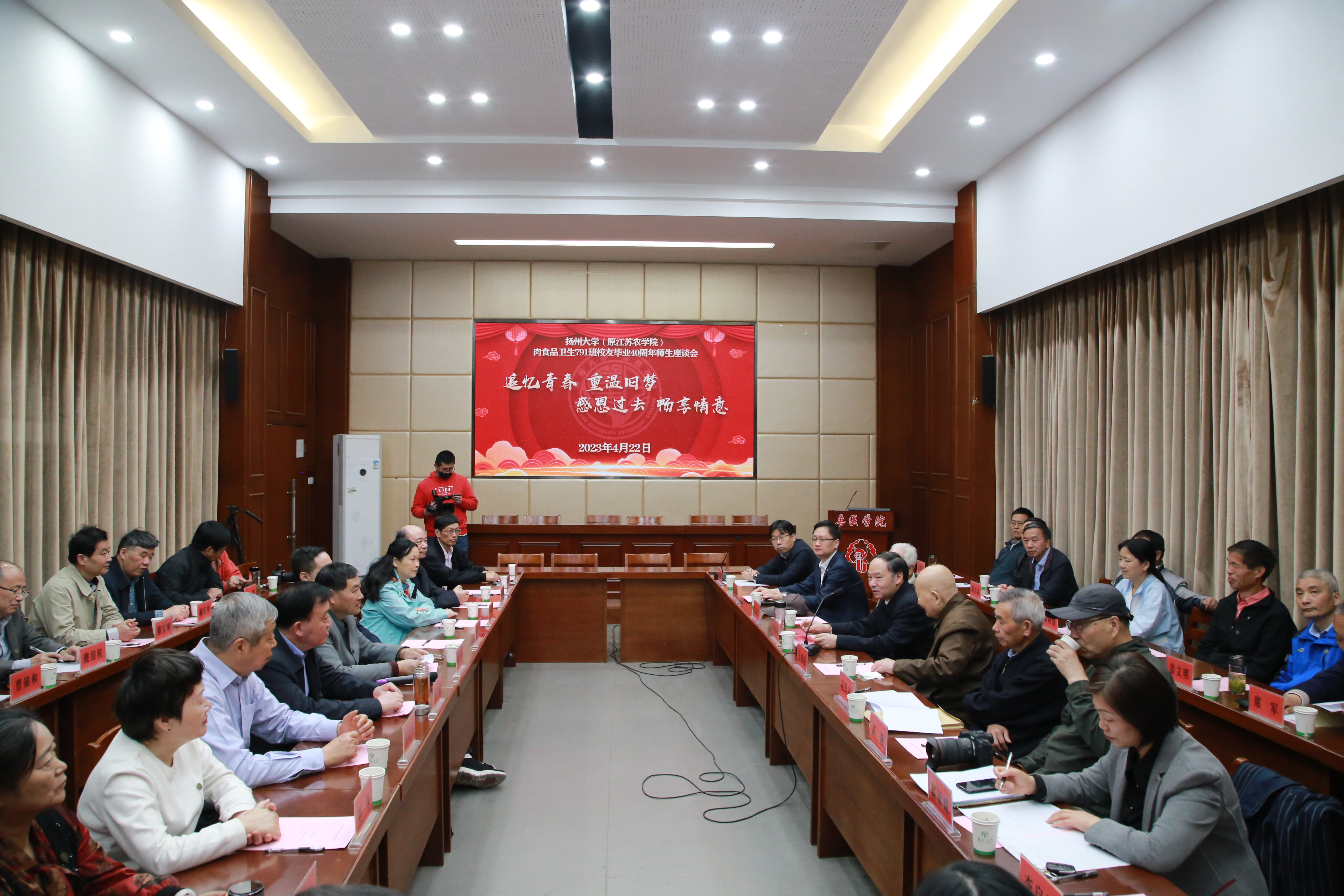 惠风和畅、万物蓬勃,最美人间四月天。4月22日,我校首届肉食品卫生专业(卫检791班)校友们毕业四十周年返校聚会。来自海内外30多位校友齐聚母校,追忆青春、重温旧梦,感恩过去、畅享情意。校党委书记焦新安、对外联络办公室(校友会)主任陈克勤、兽医学院党委书记蔡丽娅、兽医学院院长王志强、兽医学院综合办公室主任李启波以及部分退休老教师出席座谈会。
