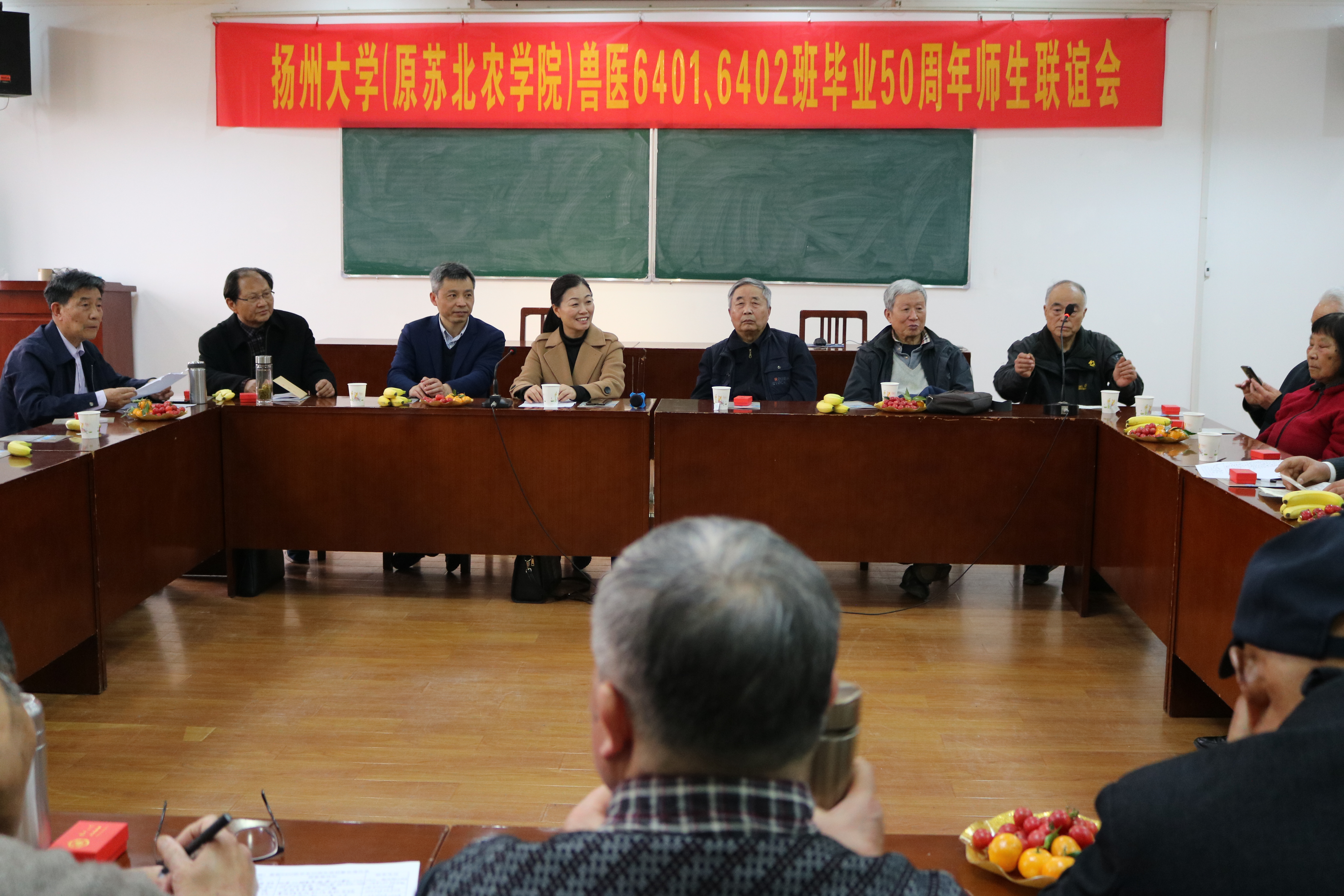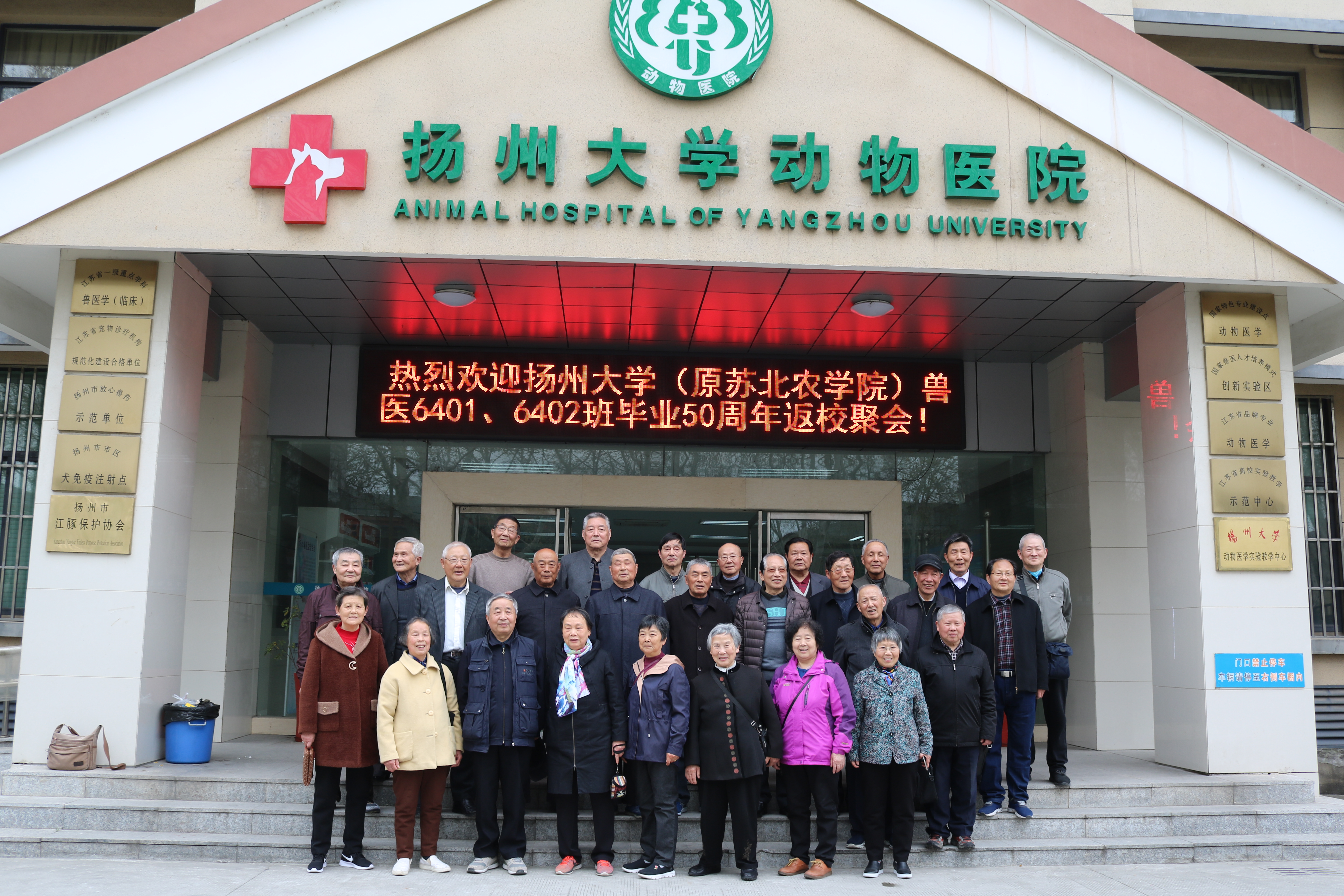 3月29日-31日,扬州大学(原苏北农学院)6401、6402班校友返校,举行毕业50周年师生联谊活动。时任辅导员梁隆圣,兽医学院党委书记蔡丽娅、对外联络办公室副主任王志健,兽医学院团委书记季正剑应邀出席了本次活动。