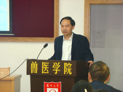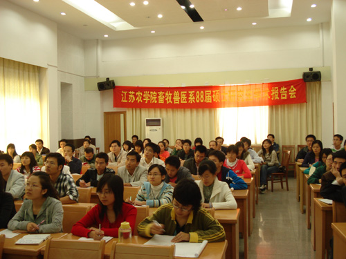 2008年10月11日下午,原江苏农学院畜牧兽医系88届硕士研究生在毕业20周年之际返回母校,在兽医学院学术报告厅举办了一场学术报告会,来自The Babraham Institute的邹贤刚研究员、中国农科院上海兽医研究所的于圣青研究员、湖南农业大学的张彬教授、广州市医药工业研究所的朱少璇研究员、上海市农委的张苏华研究员分别围绕动物模型和癌症研究、药物非临床研究质量管理规范、动物疫病防控与公共卫生等方面作了精彩的学术报告。报告会由焦新安副校长主持。