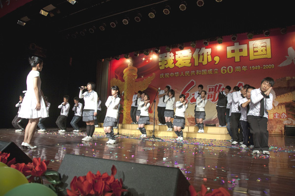 红歌会在《今天是你的生日,中国》大合唱中拉开了序幕,整场晚会分为“红遍中华”和“歌颂祖国”两个篇章,晚会气势恢宏、节目精彩纷呈、师生情绪激昂、现场高潮迭起,演员们满腔热血、激情满怀地演唱了《没有共产党就没有新中国》、《大中国》、《保卫黄河》、《七子之歌》、《我们走在大路上》、《感恩的心》、《我和我的祖国》、《南泥湾》、《春天的故事》、《红旗飘飘》、《让世界充满爱》、《团结就是力量》、《走进新时代》、《请到天涯海角来》、《远方的客人请你留下来》、《爱我中华》、《我的祖国》、《明天会更好》等一首首耳熟能详的爱国主义歌曲,用一个又一个精彩的节目表达了对伟大祖国60岁生日由衷的祝福之情,最后全场高唱《歌唱祖国》,将晚会的气氛推向了最高潮。