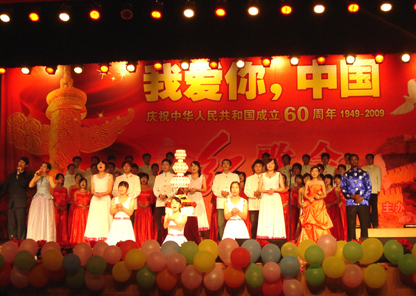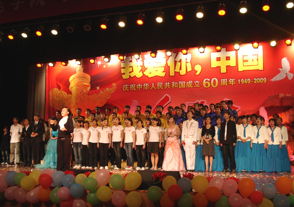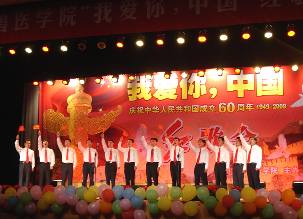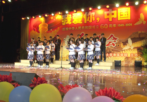 9月26日晚,兽医学院在大学生活动中心小剧场隆重举行“我爱你,中国” 庆祝新中国成立60周年红歌会,校党委宣传部、学工部、校团委等职能部门领导、学院领导出席了晚会。