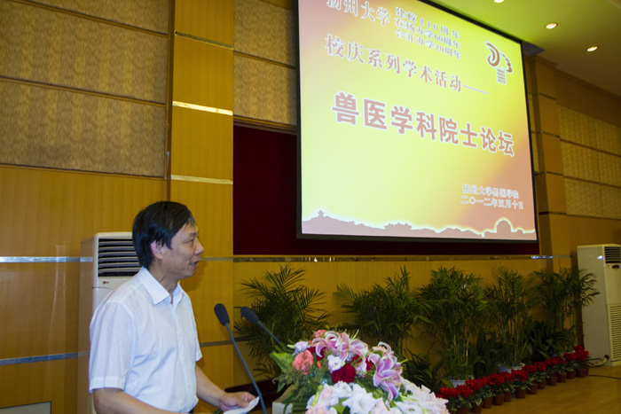 为庆祝我校建校110周年、在扬办学60周年、合并办学20周年,5月10日,兽医学院在荷花池校区教学主楼二楼多功能厅隆重举办校庆系列学术活动——兽医学科院士论坛。焦新安副校长出席论坛,范健副校长主持论坛并致辞。