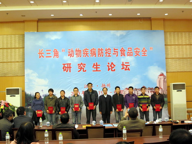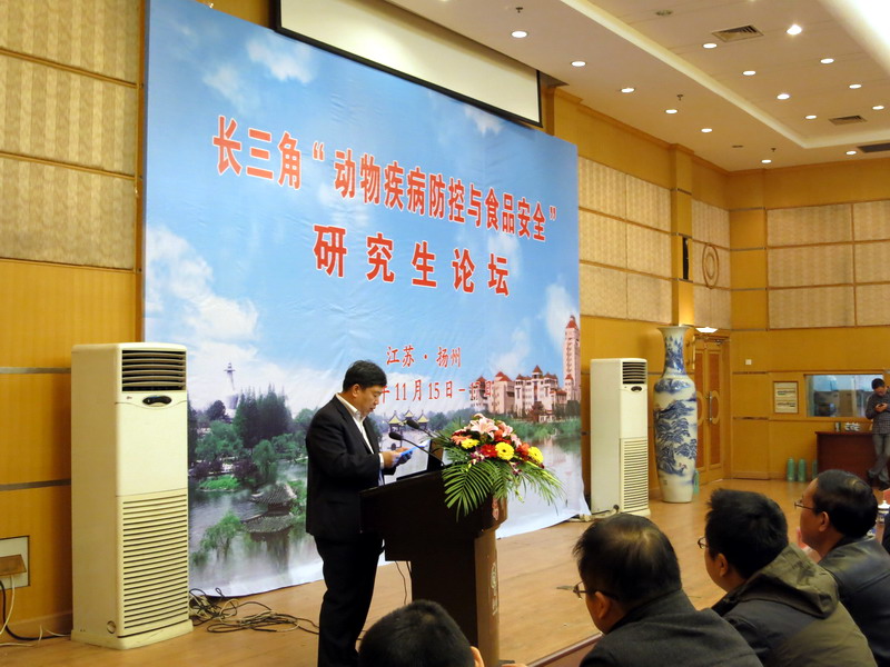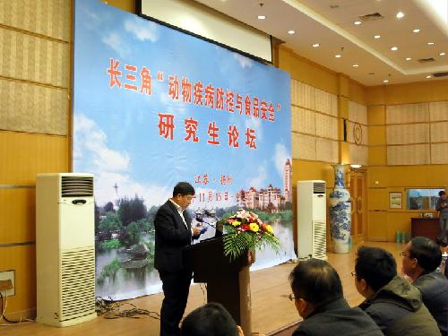 11月15日到17日,由长三角研究生教育创新计划协作委员会主办,江苏省学位办、扬州大学承办的长三角“动物疾病防控与食品安全”研究生论坛在我校成功举行。此次论坛由扬州大学兽医学院常务副院长刘宗平教授主持,江苏省教育厅研究生处处长、省学位办主任杨晓江教授及扬州大学副校长刘祖汉教授出席开幕式并致辞。