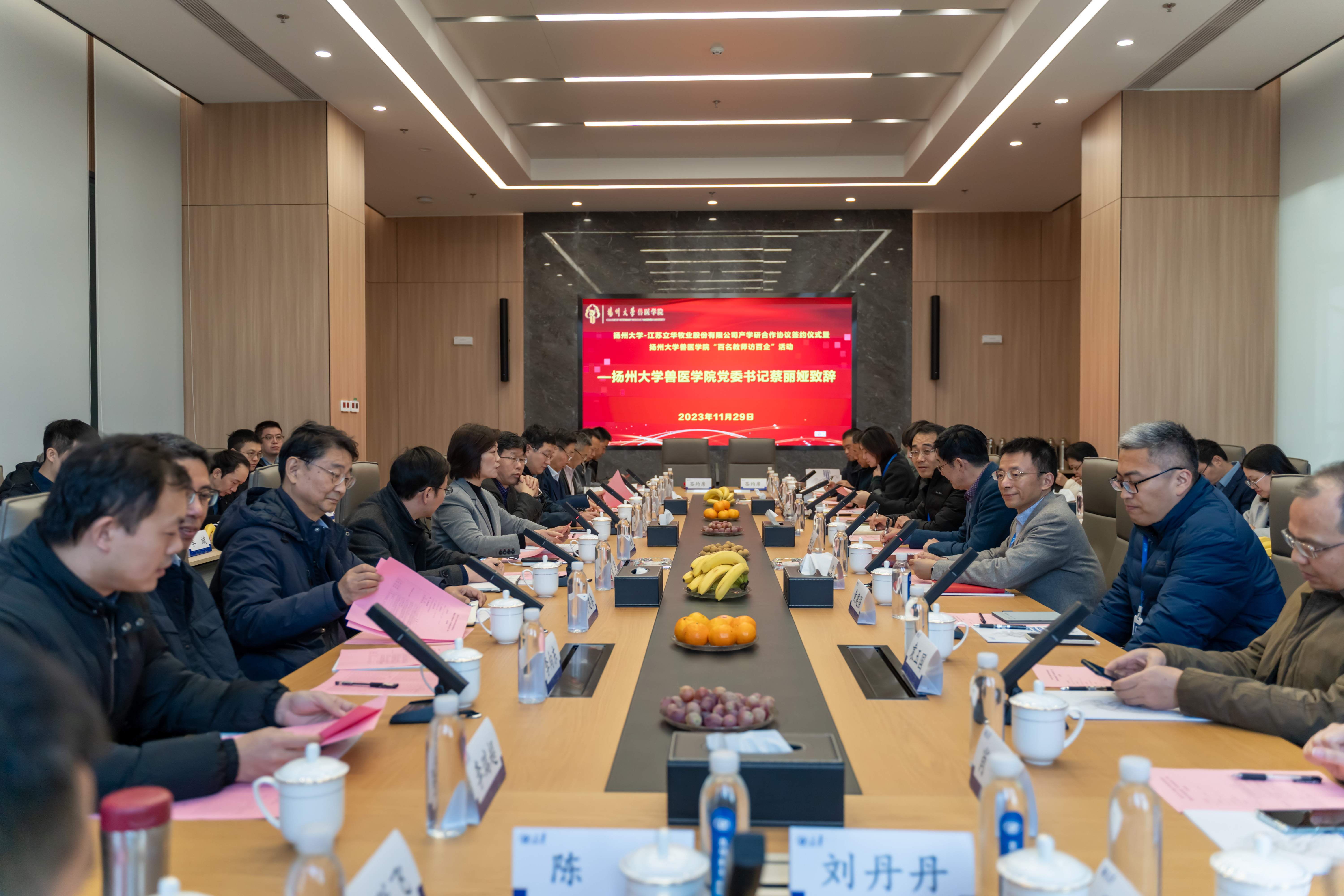 11月29日,我院赴江苏立华牧业股份有限公司开展产学研合作协议签约暨“百名教师访百企”活动。立华股份董事长/总裁程立力、学院领导班子以及企业骨干、学院青年教师代表等近50人参加活动。