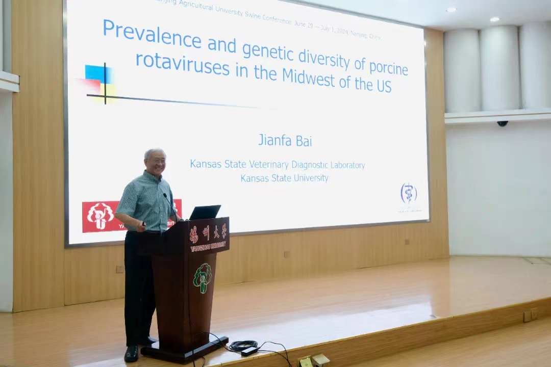 6月27日下午,由扬州大学兽医学院(比较医学研究院)主办的2024年国际猪病学术研讨会在扬州大学中心校区逸夫报告厅召开。会议邀请韩国忠南国立大学Hu Suk Lee教授、韩国全北国立大学教授Sang-Ik Oh教授、美国堪萨斯州立大学白建法教授、美国奥本大学王成明教授、美国田纳西州立大学桑永明教授和美国伊利诺斯大学王乐义教授作大会报告。学院院长王志强、副院长钱琨、副院长秦涛等出席会议。