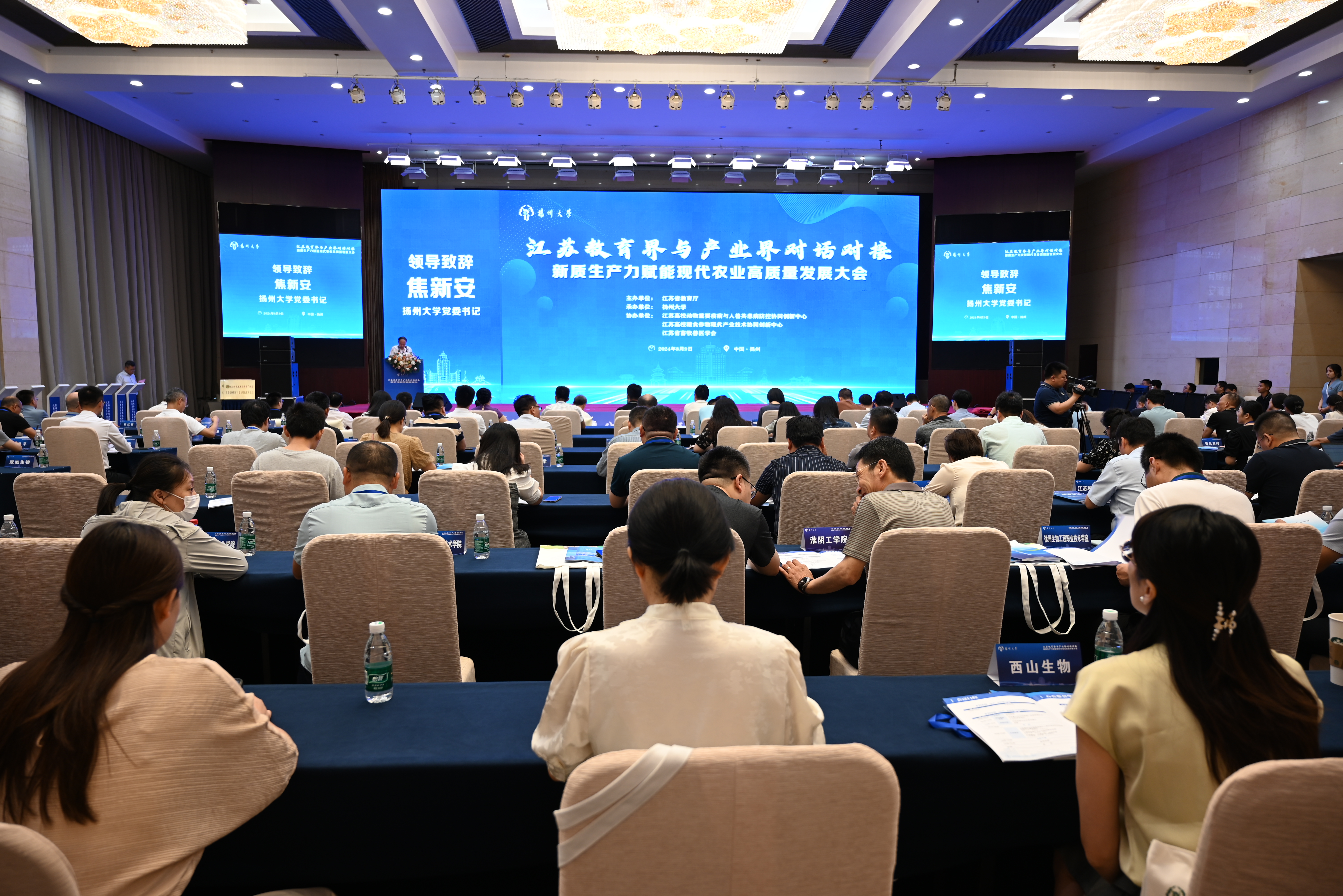 为深入贯彻落实党的二十大、二十届三中全会精神和习近平总书记对江苏工作重要讲话重要指示精神,根据省委省政府重大决策部署,8月9日,由江苏省教育厅主办,扬州大学承办、扬州大学兽医学院人兽共患病协同中心协办的“江苏教育界与产业界对话对接——新质生产力赋能现代农业高质量发展大会”在扬州隆重举行。
