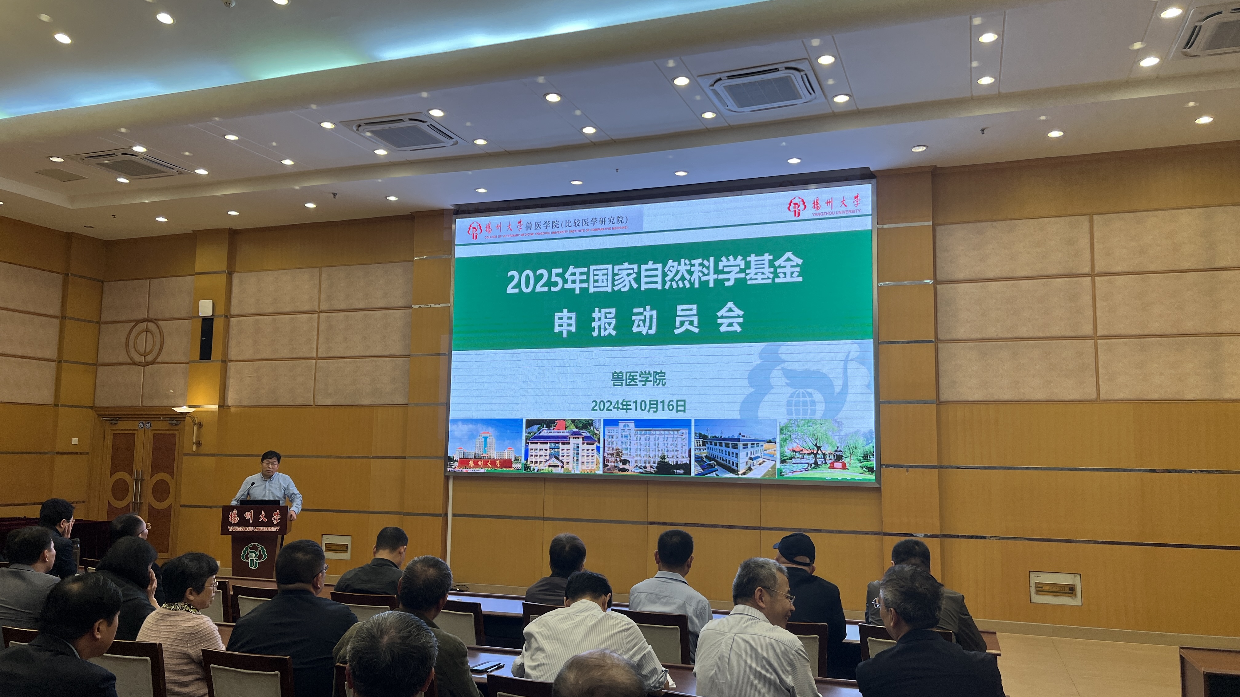 10月16日,学院在荷花池校区主楼二楼多功能厅举行2025年度国家自然科学基金项目申报动员会,全面部署2025年国家自然科学基金申报工作。副校长赵文明出席会议,兽医学院院长王志强主持会议,学院150余名教职工参会。