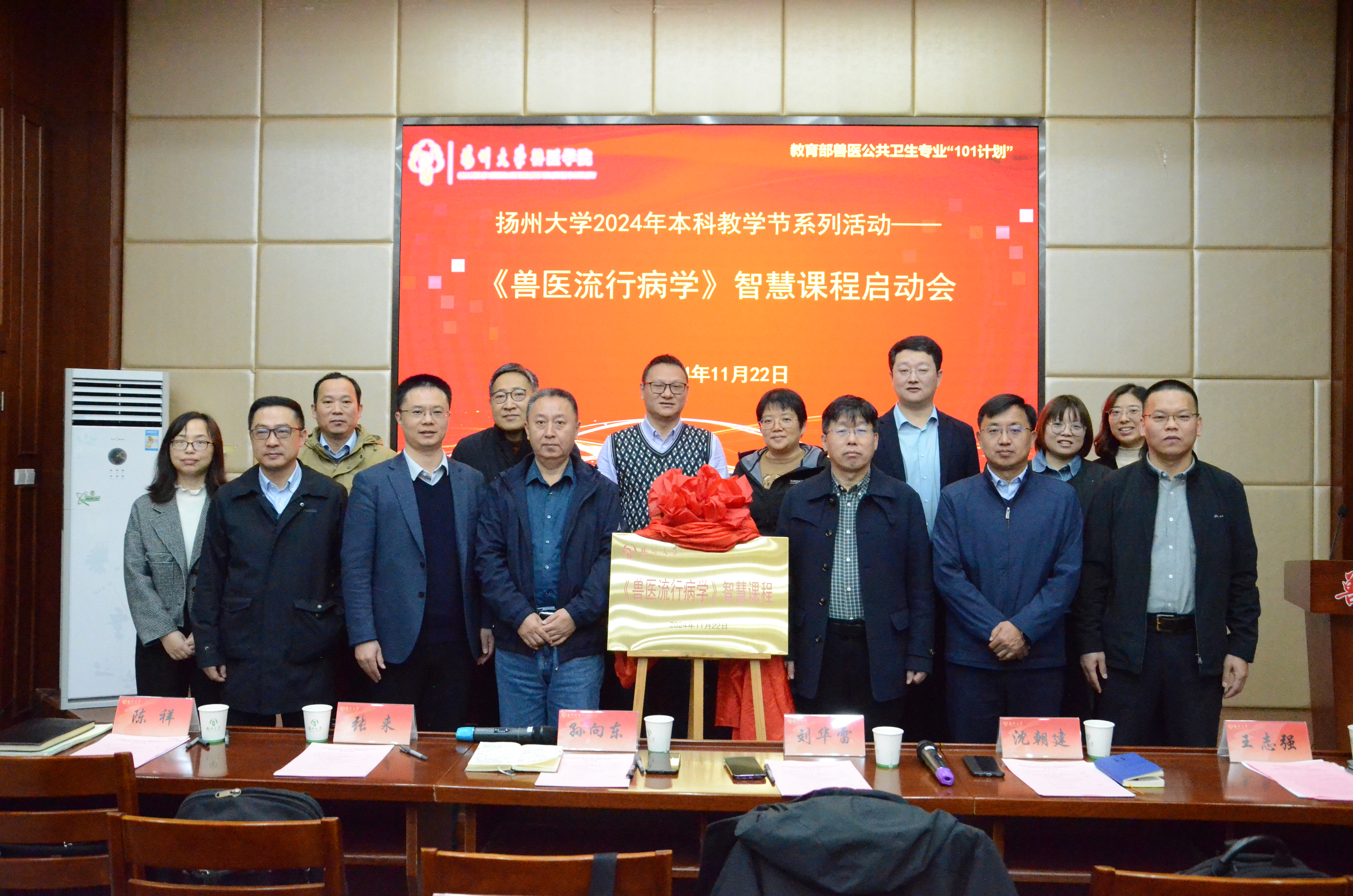 正值2024年度扬州大学本科教学节之际,11月22日上午,教育部兽医公共卫生专业“101计划”兽医流行病学教研系列讲坛暨扬州大学《兽医流行病学》智慧课程启动会在扬州大学兽医学院二楼学术报告厅隆重举行。来自中国动物卫生与流行病学中心多位领导、扬州大学教务处副处长张来教授、扬州大学兽医学院院长王志强教授,及扬州大学兽医学院多位专家教授出席本次活动。兽医学院副院长秦涛副教授、兽医学院刘文博副教授共同主持本次活动。