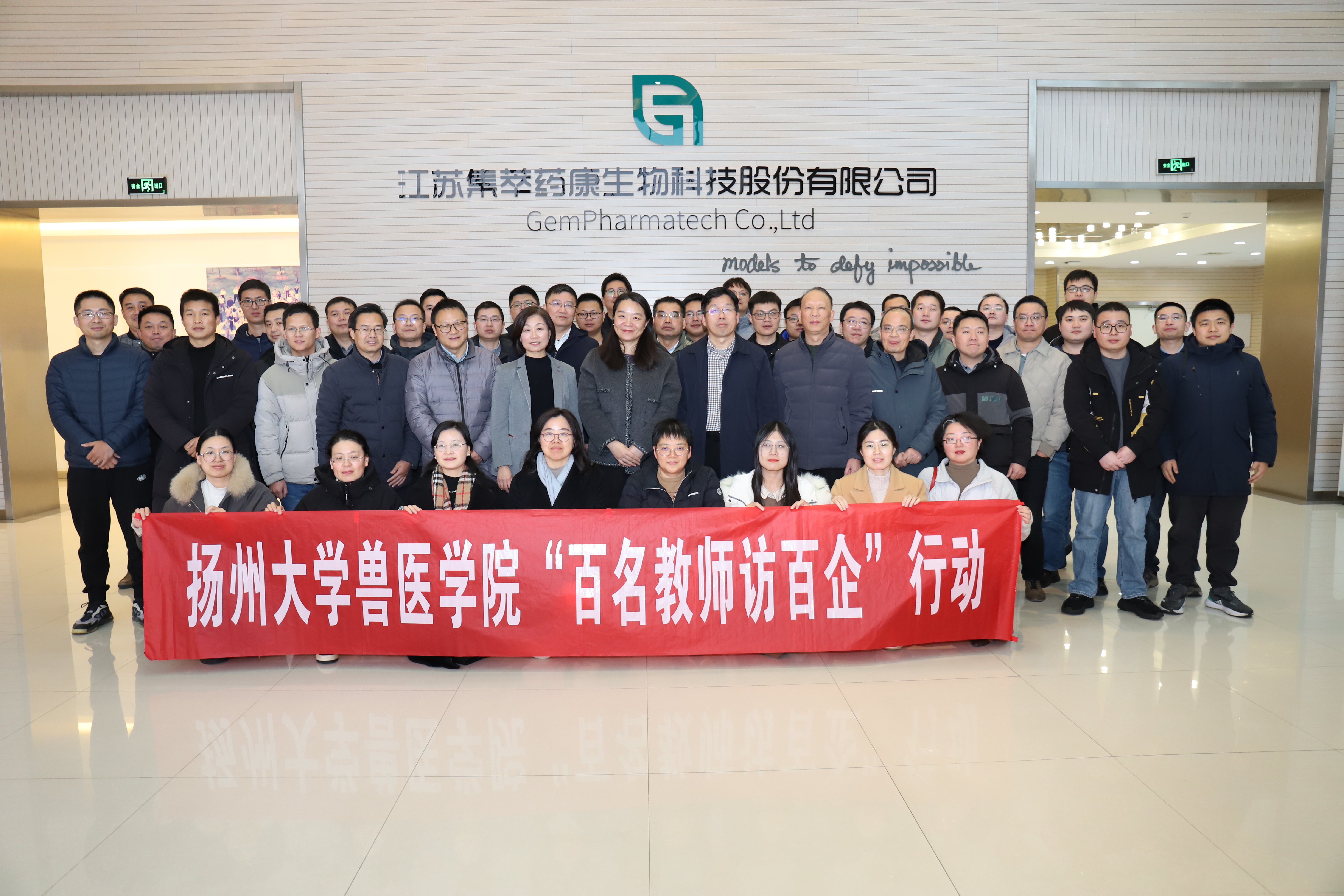 12月11日,我院与江苏集萃药康生物科技股份有限公司举行产学研合作协议签约仪式暨扬州大学兽医学院“百名教师访百企”系列活动。江苏集萃药康生物科技股份有限公司总经理赵静、党总支副书记陶然,兽医学院党委书记蔡丽娅、院长王志强以及学院青年教师代表50余人参加活动。活动由李晓彤主任主持。