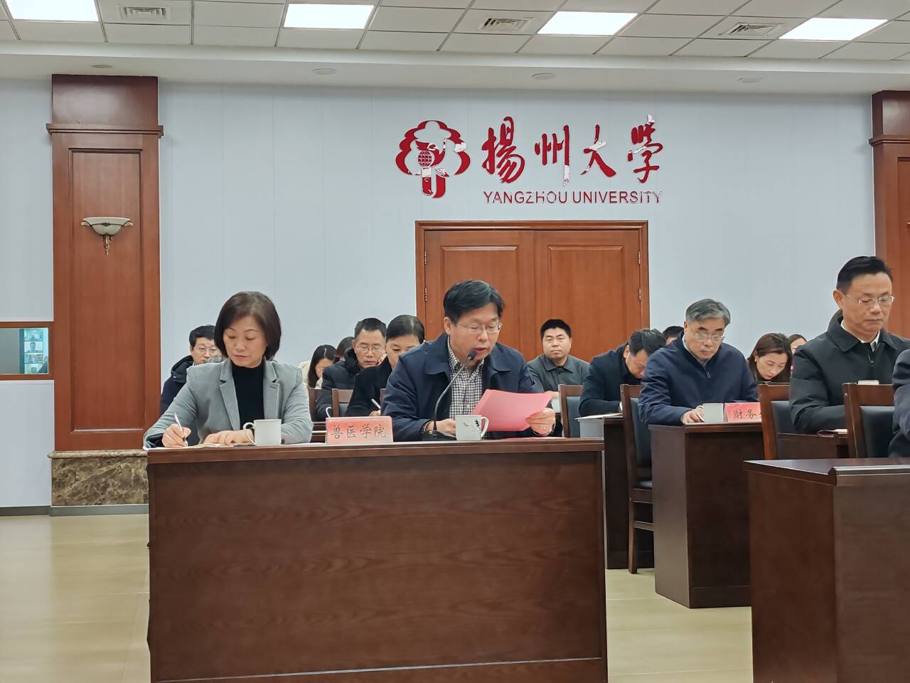 扬州大学党办、教务处、科技处、人资处、国际处、学工部(处)、财务处、设备处、校团委、招办、就业中心、教评中心、图书馆等部门负责人,兽医学院全体院领导,动物医学专业师生代表参加会议。